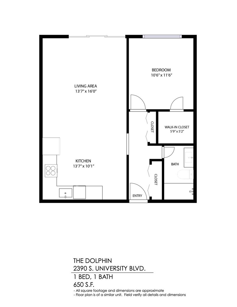 1 Dormitorio, 1 Baño, 650 pies²Disponible AhoraGalería del Modelo