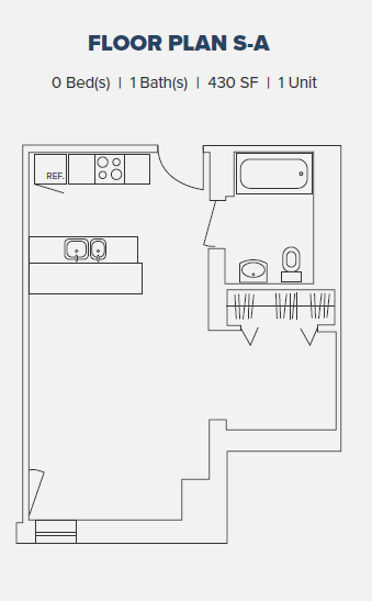 Modelo de apartamento: Studio ALlame para PreciosEstudio, 1 Baño, sq ftNo DisponibleStudio A - Plano 1 Studio B