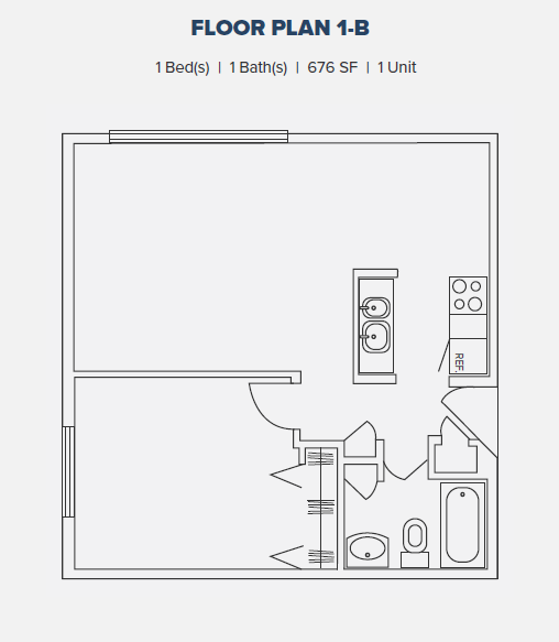 Modelo de apartamento: One Bed - 1BLlame para Precios1 Dormitorio, 1 Baño, 676 sq ftNo DisponibleOne Bed - 1B - Plano 1 One Bed - 1C