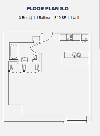 Modelo de apartamento: Studio DLlame para PreciosEstudio, 1 Baño, sq ftNo DisponibleStudio D - Plano 1 1 Dormitorio