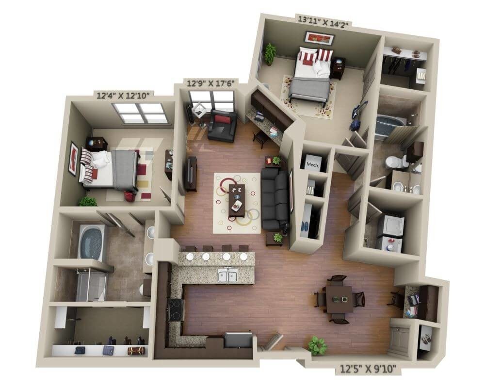 Modelo de apartamento: Two Bedroom B2ILlame para Precios2 Dormitorios, 2 Baños, 1300 sq ftNo Disponible![]() - Two Bedroom B2I - Plano 1