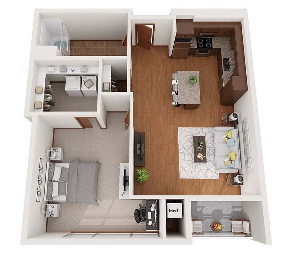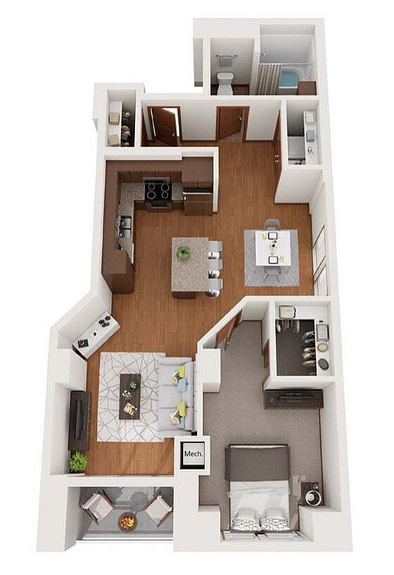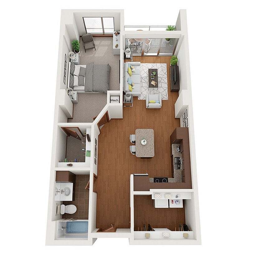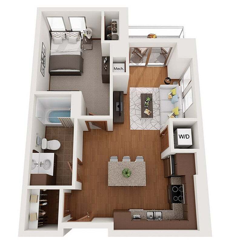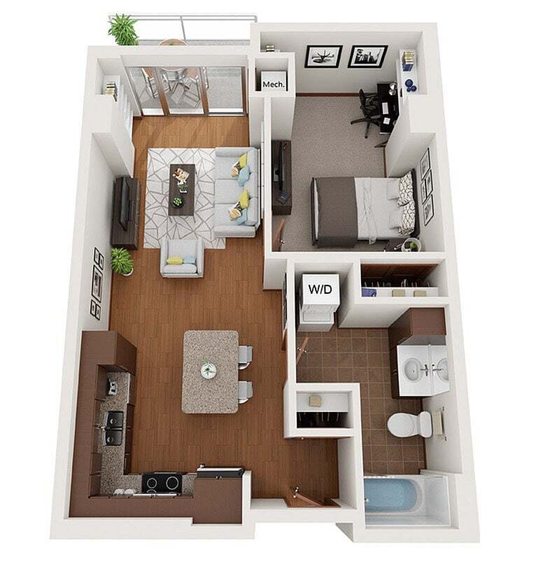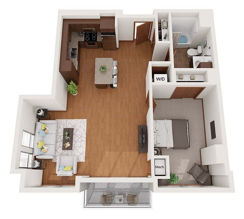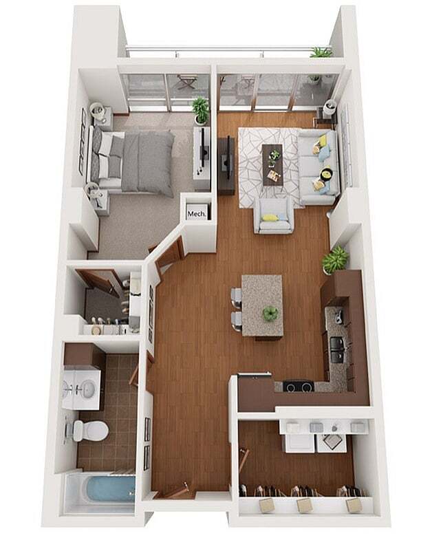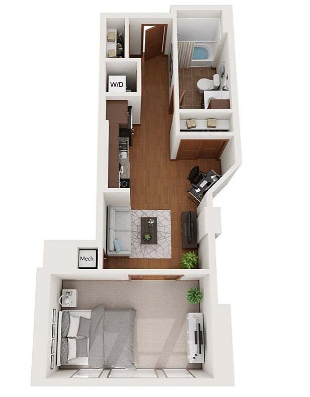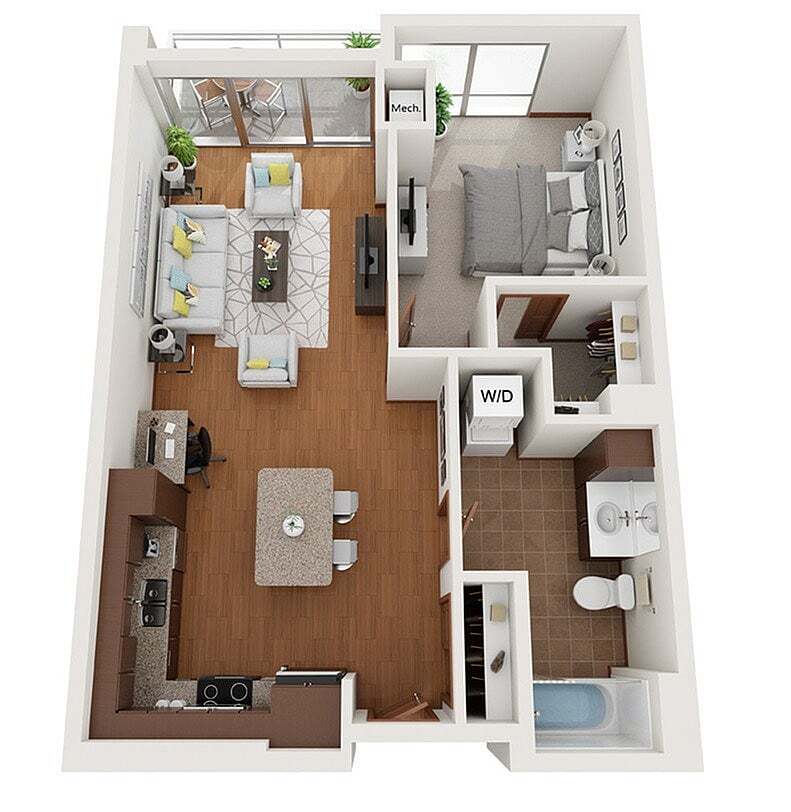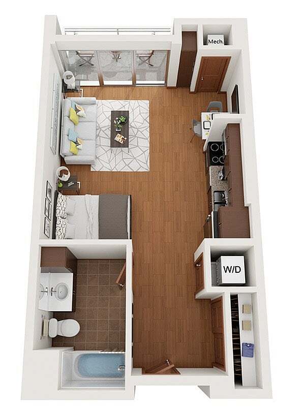 Modelo de apartamento: XDesde $1,750Estudio, 1 Baño, 503 sq ftDisponible August 15, 2026![]()