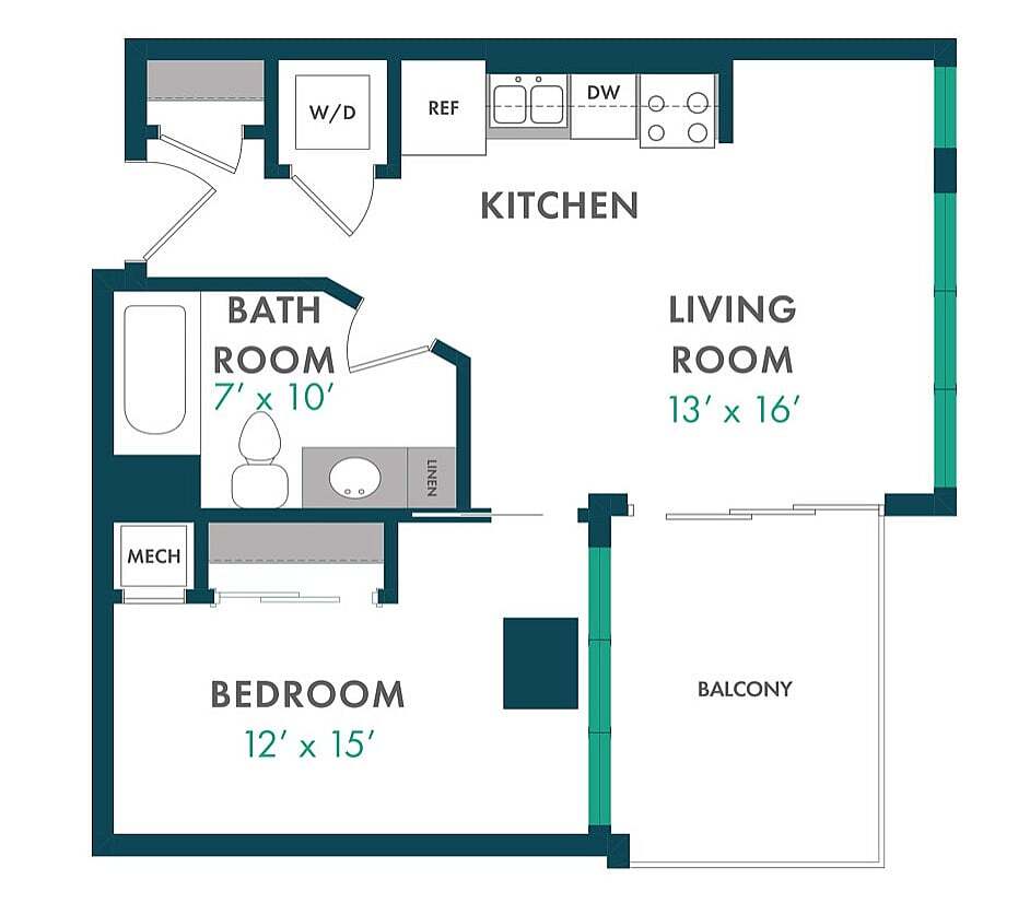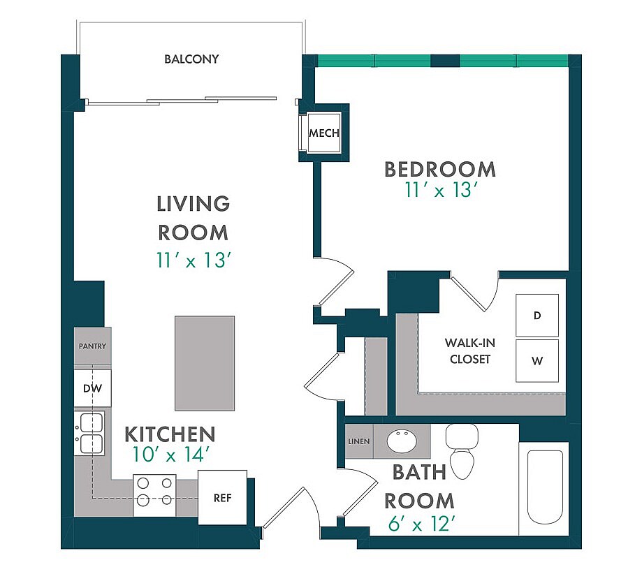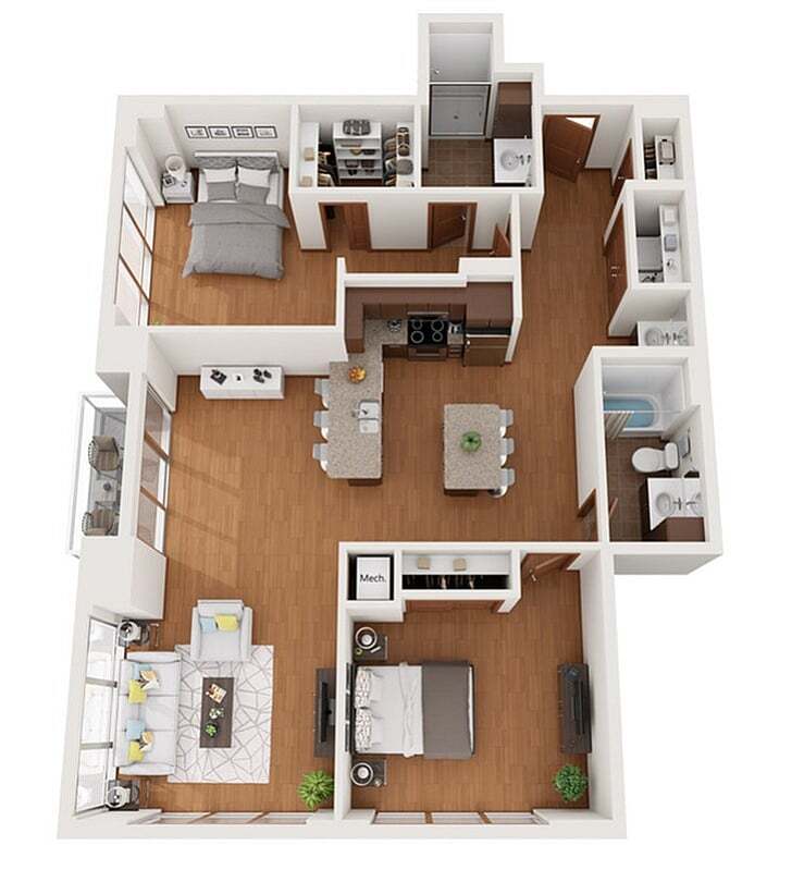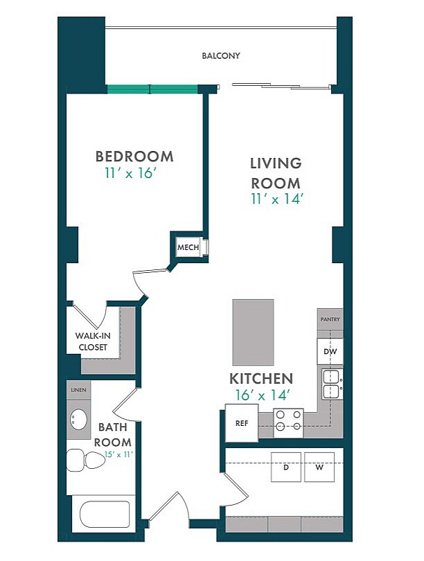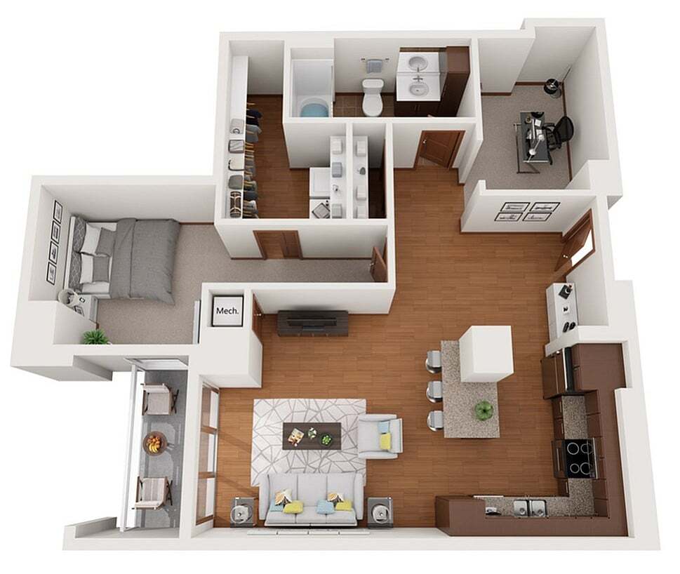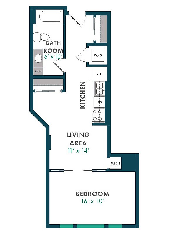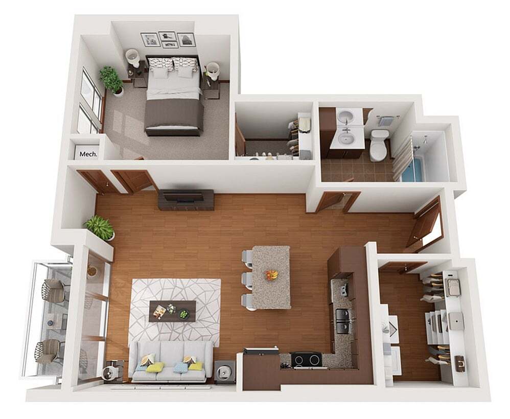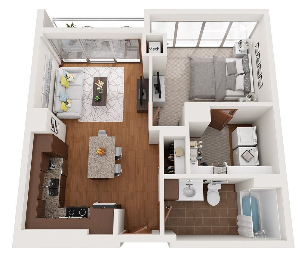 Modelo de apartamento: XDesde $1,750Estudio, 1 Baño, 503 sq ftDisponible August 15, 2026![]()