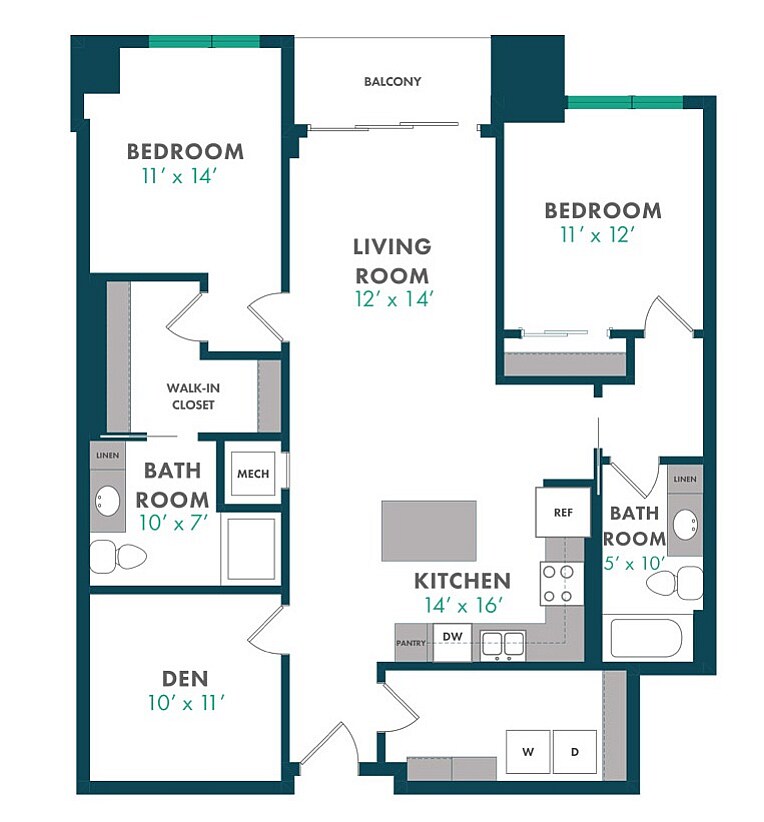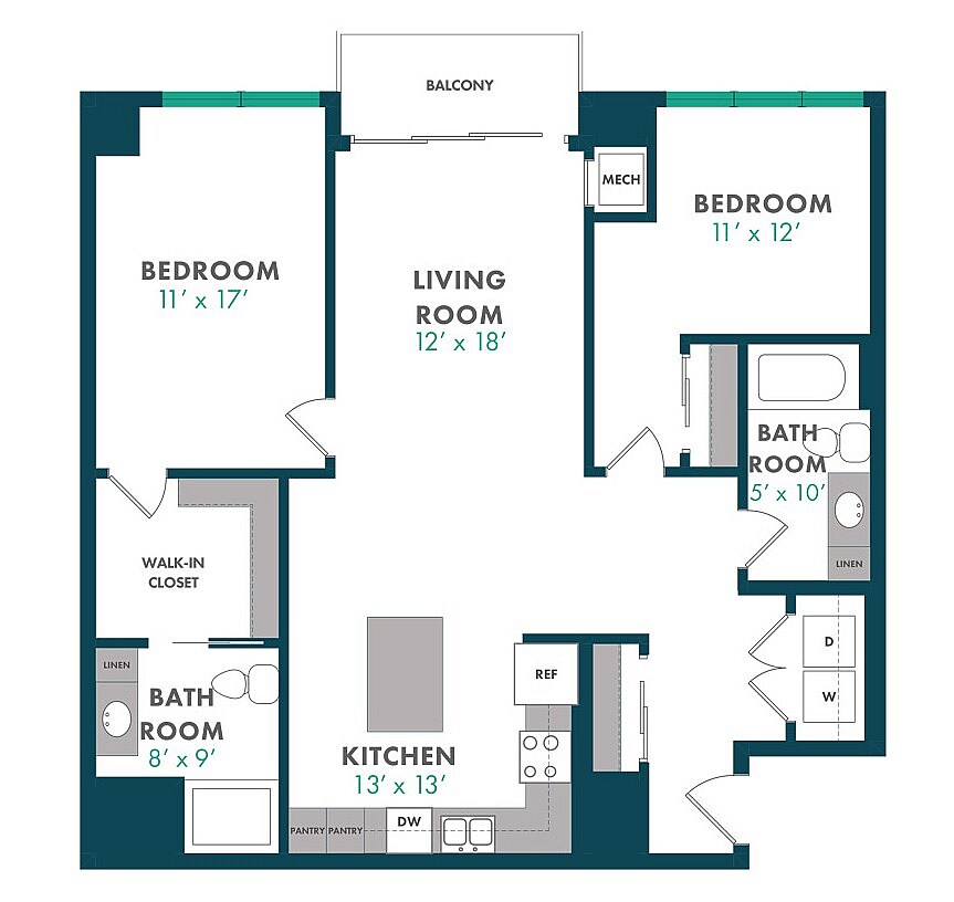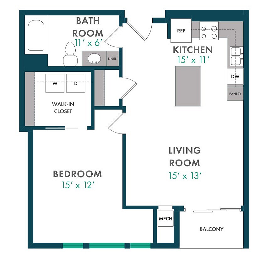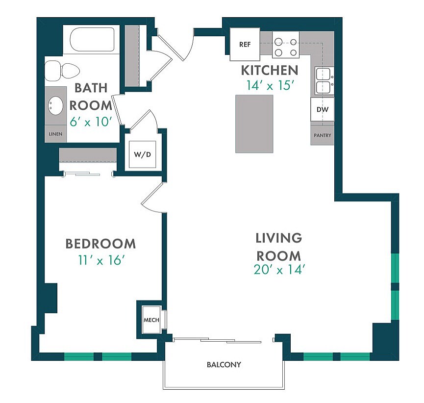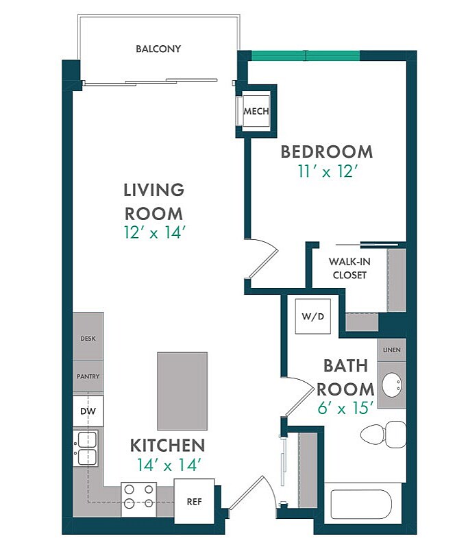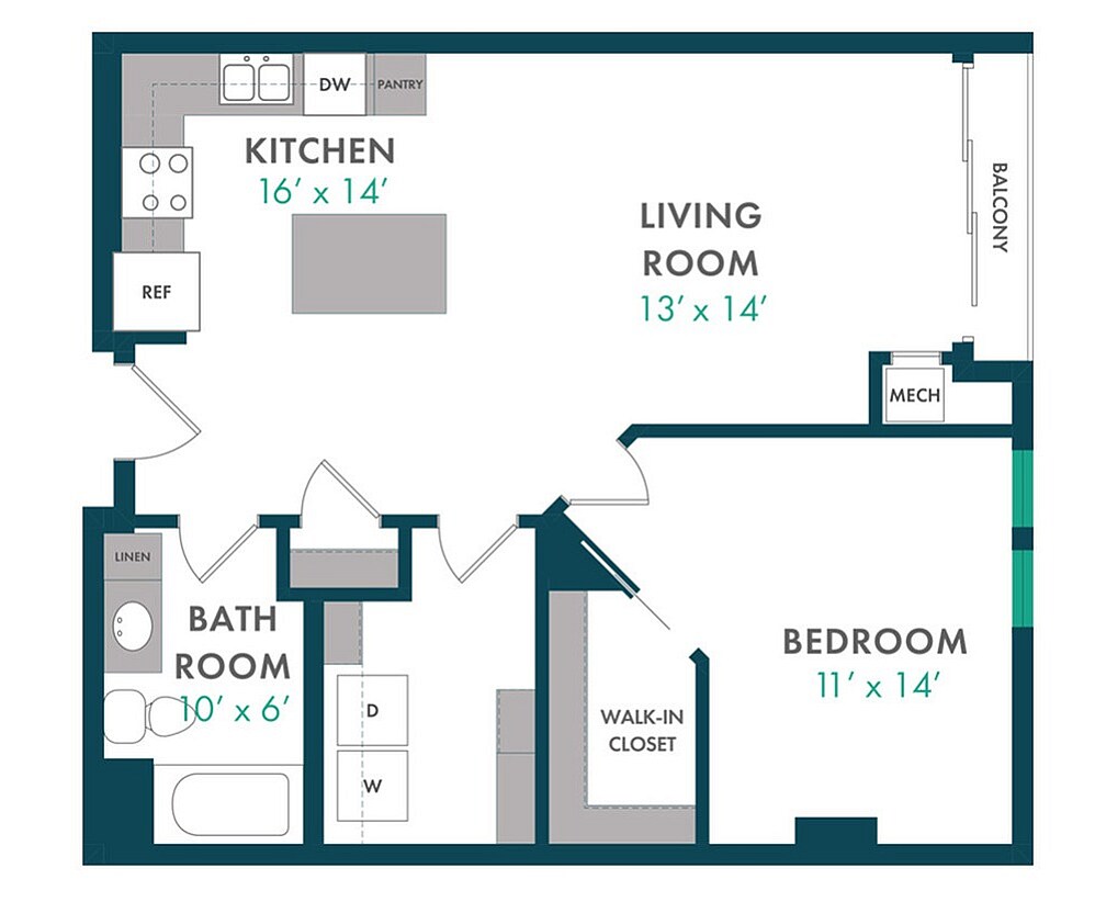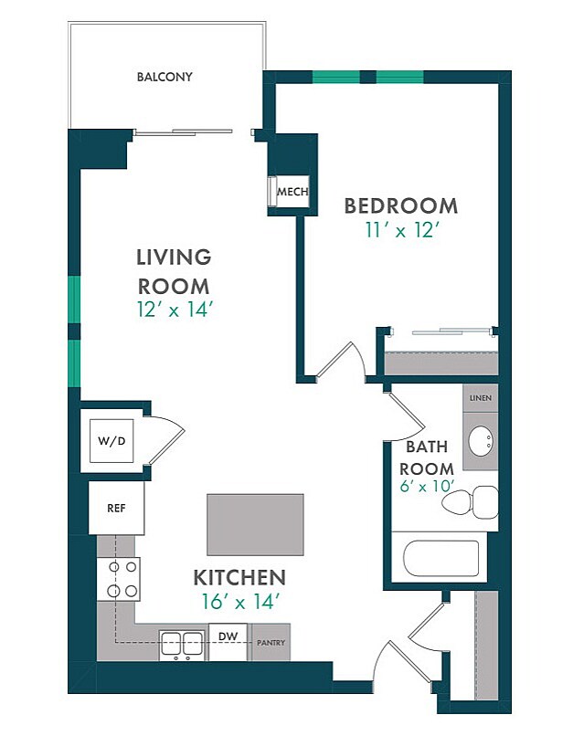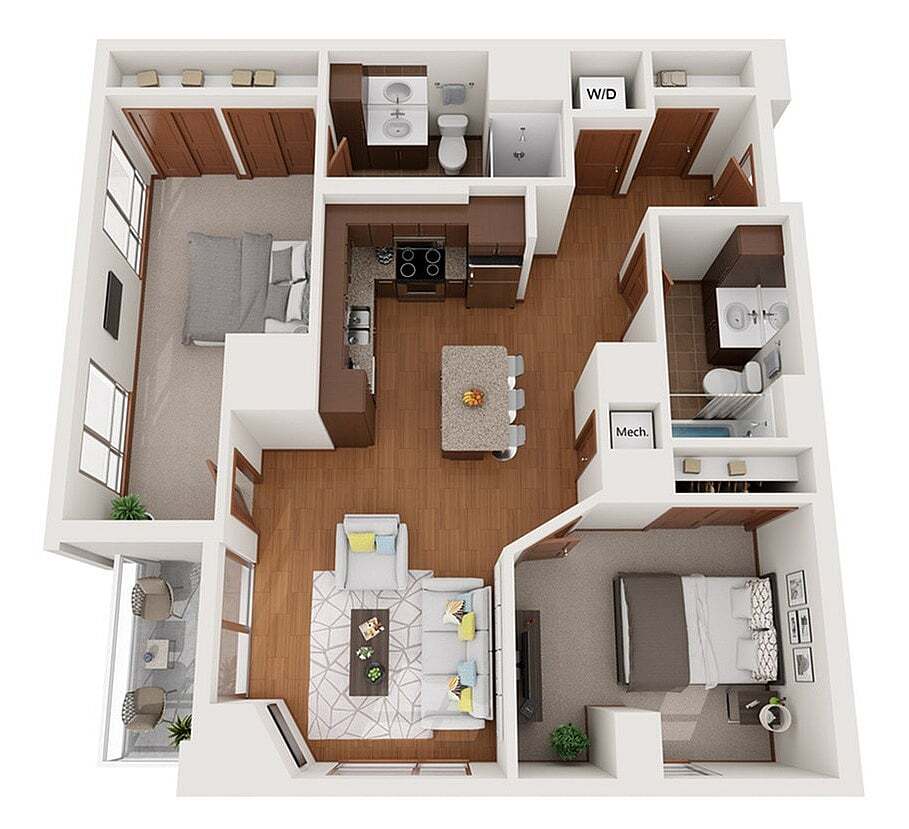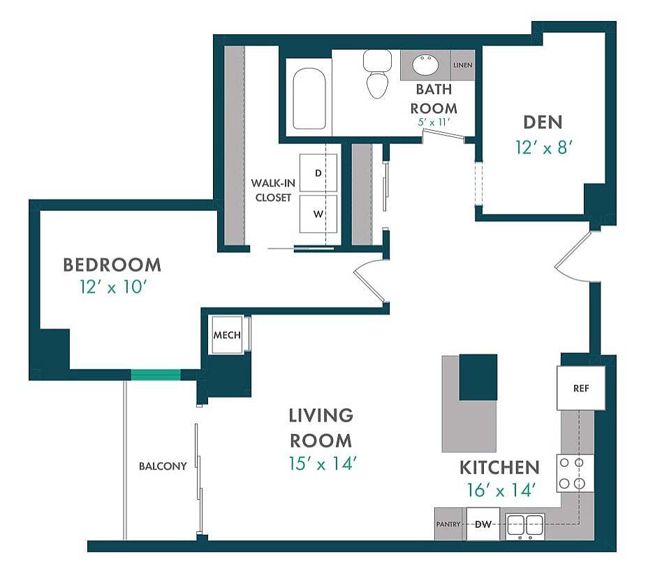Modelo de apartamento: XDesde $1,750Estudio, 1 Baño, 503 sq ftDisponible August 15, 2026![]()