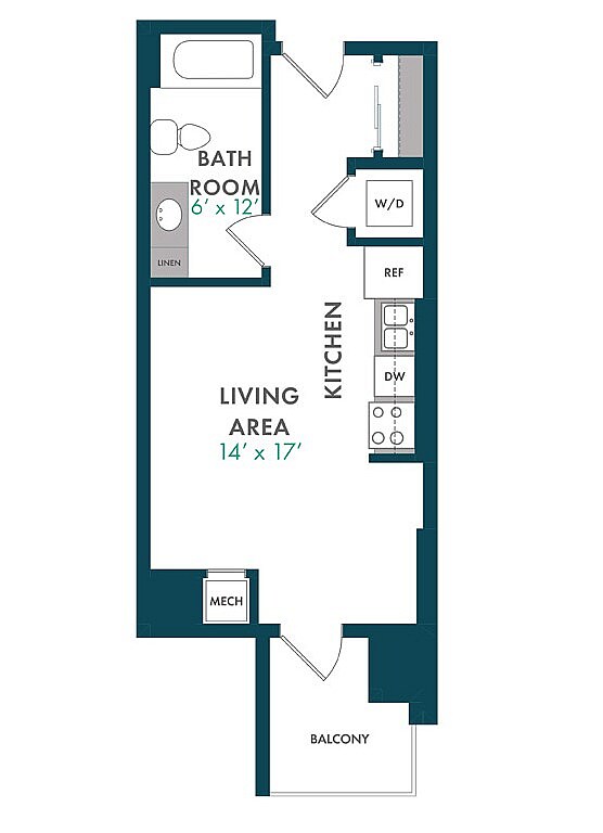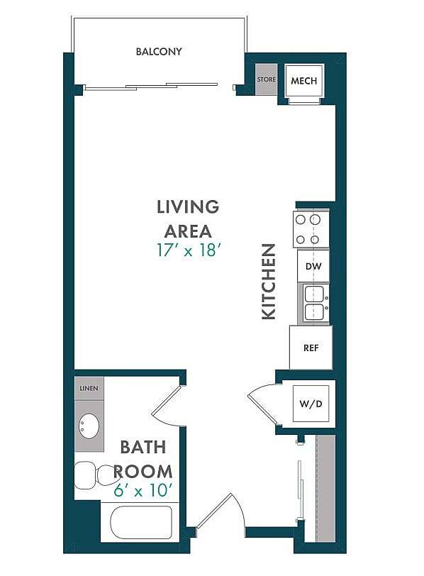 Estudio, 1 Baño, 503 pies²Disponible AhoraGalería del Modelo