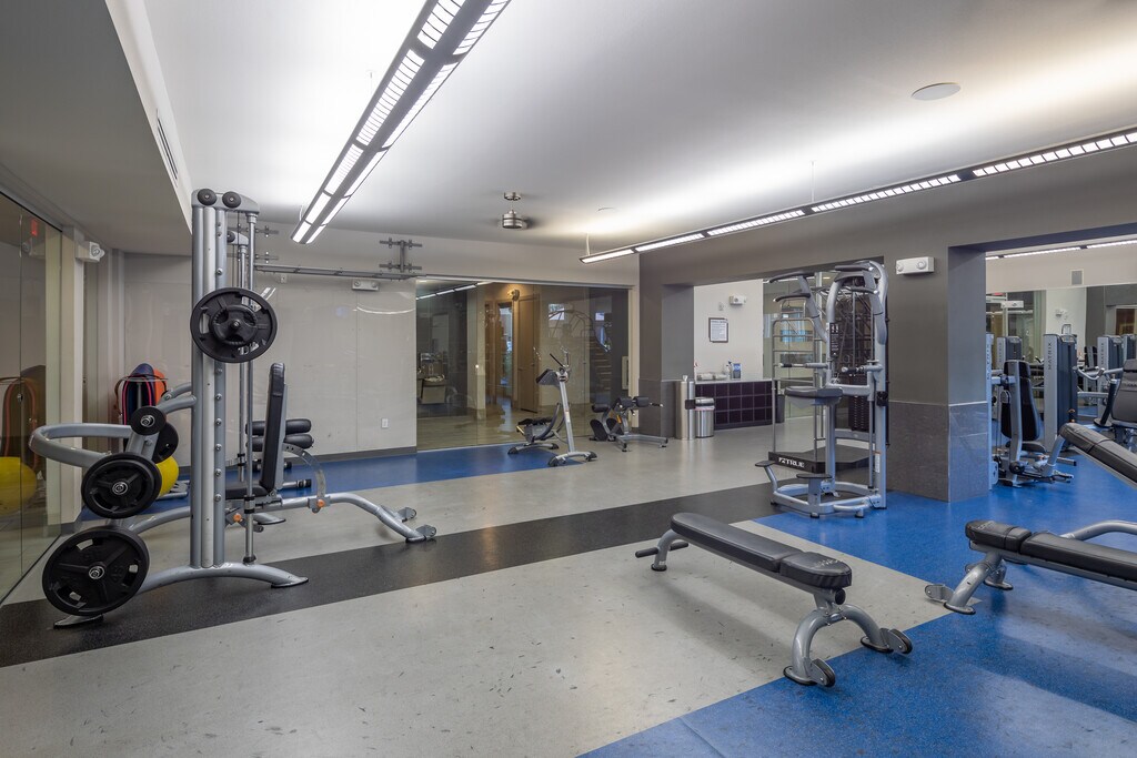 - Gimnasio con pesas libres y ejercicios cardiovasculares