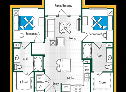 Modelo de apartamento: B12 Dormitorios, 2 Baños, 914 sq ftNo Disponible![]()