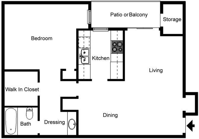 1 Dormitorio, 1 Baño, 790 pies²Disponible AhoraGalería del Modelo