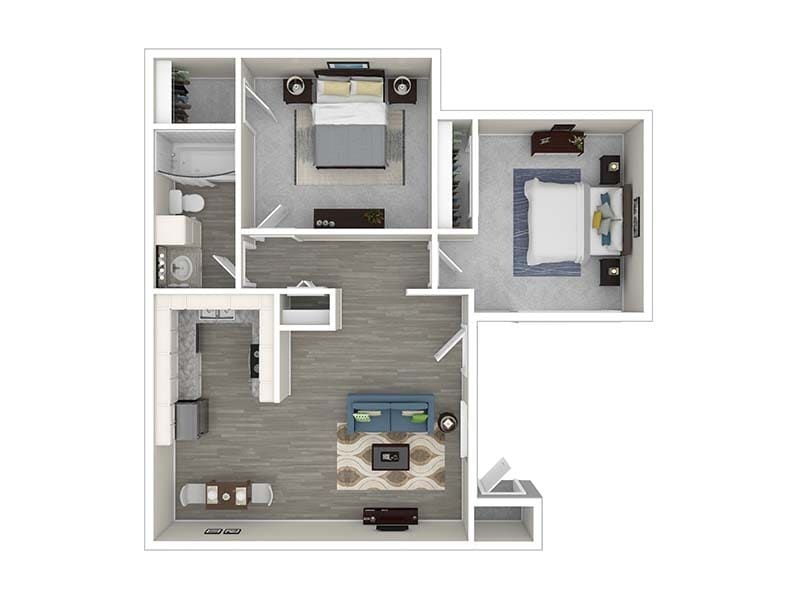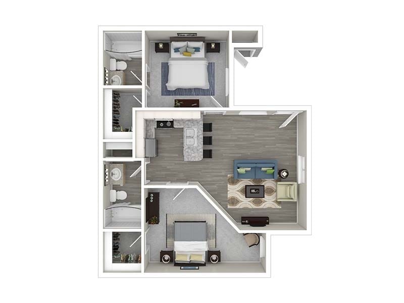 Modelo de apartamento: B1Desde $1,3352 Dormitorios, 1 Baño, 700 sq ftDisponible Ahora![]()