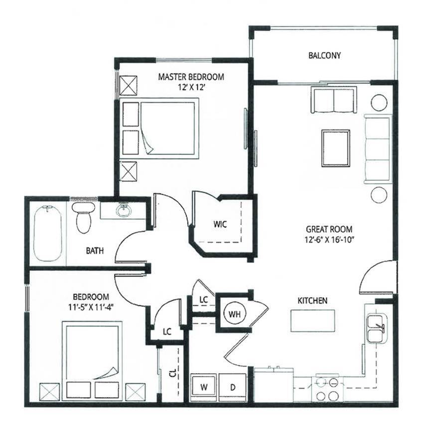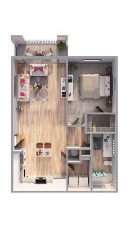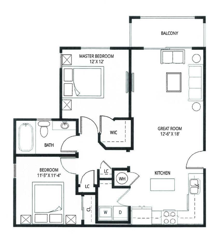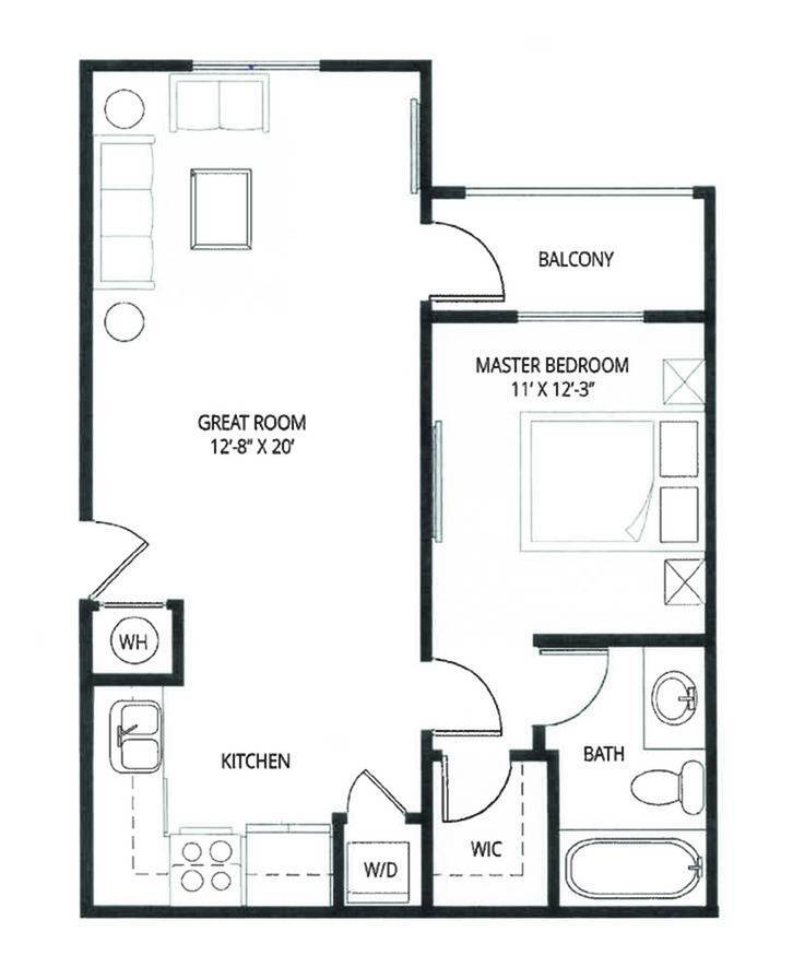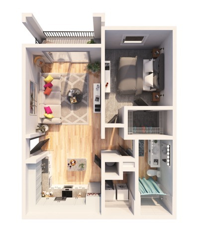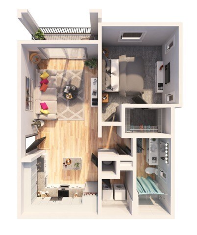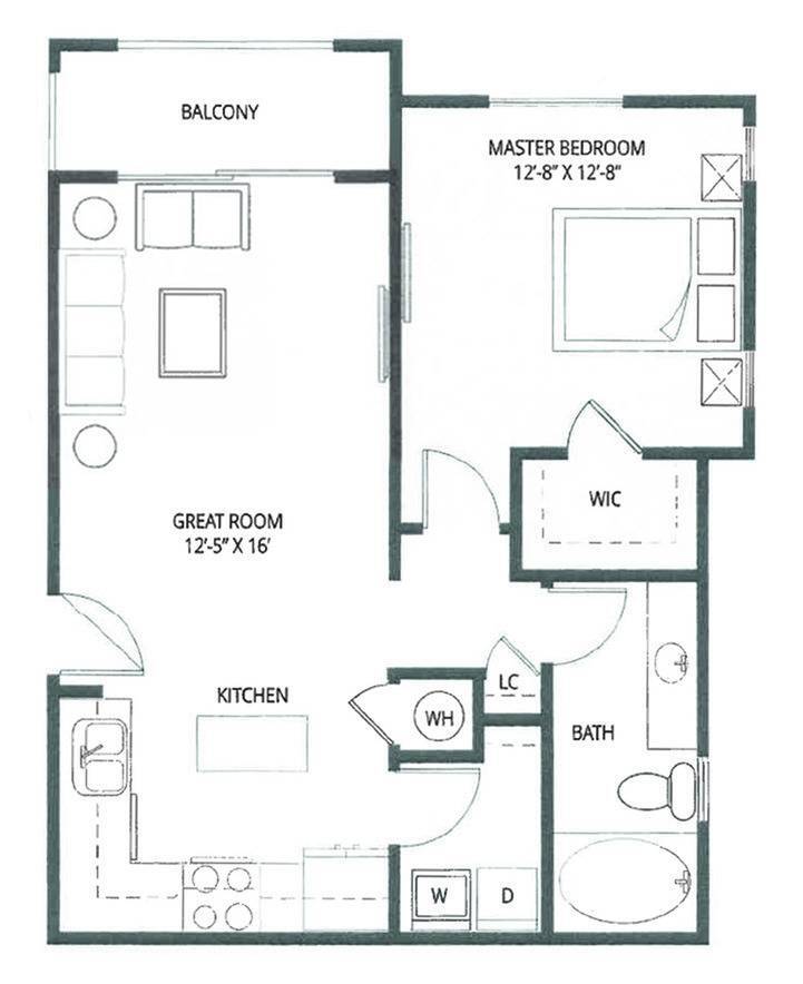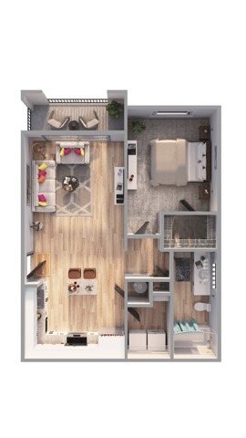 1 Dormitorio, 1 Baño, 765 pies²Disponible AhoraGalería del Modelo