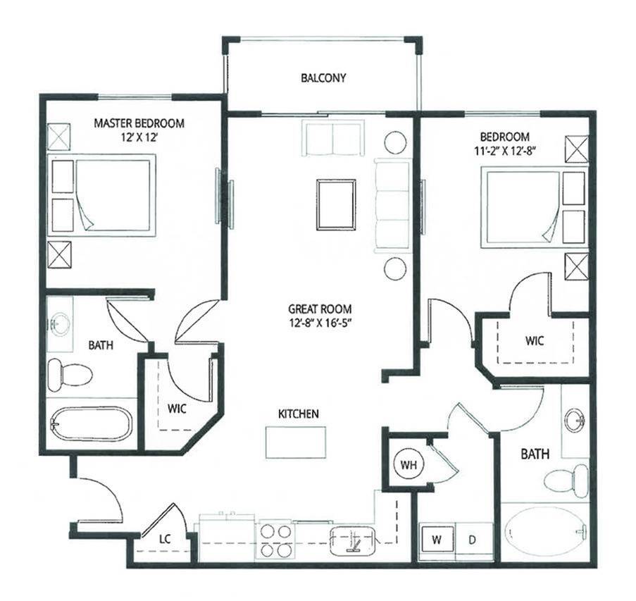 1 Dormitorio, 1 Baño, 763 pies²Disponible AhoraGalería del Modelo