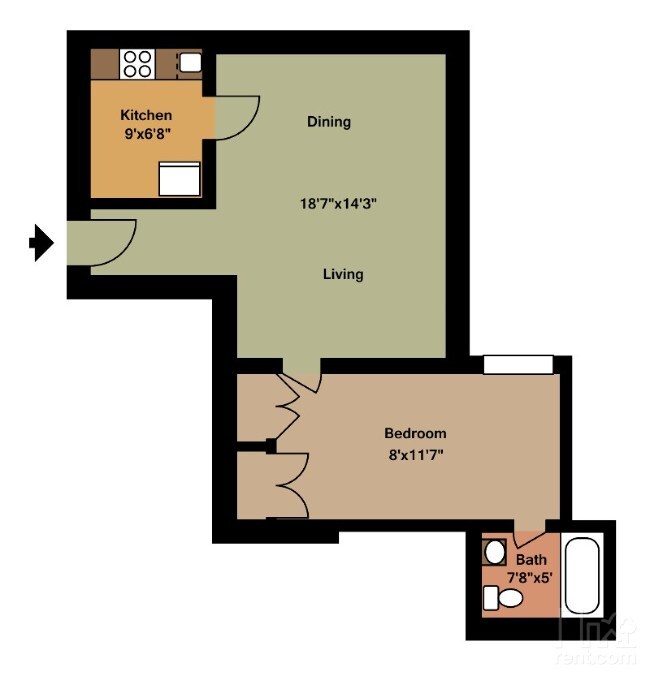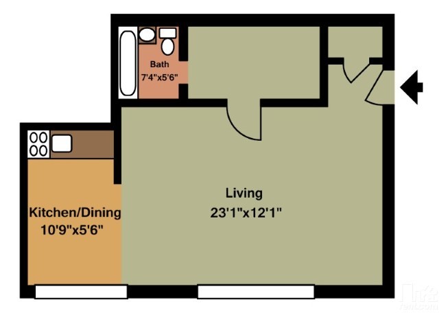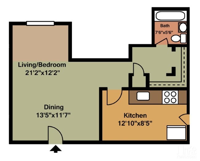 Estudio, 1 Baño, 390-675 pies²Disponible Dec 30Galería del Modelo