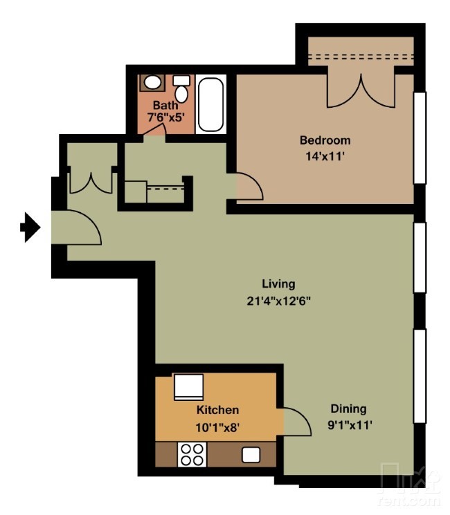 1 Dormitorio, 1 Baño, 640-750 pies²Disponible Nov 21Galería del Modelo