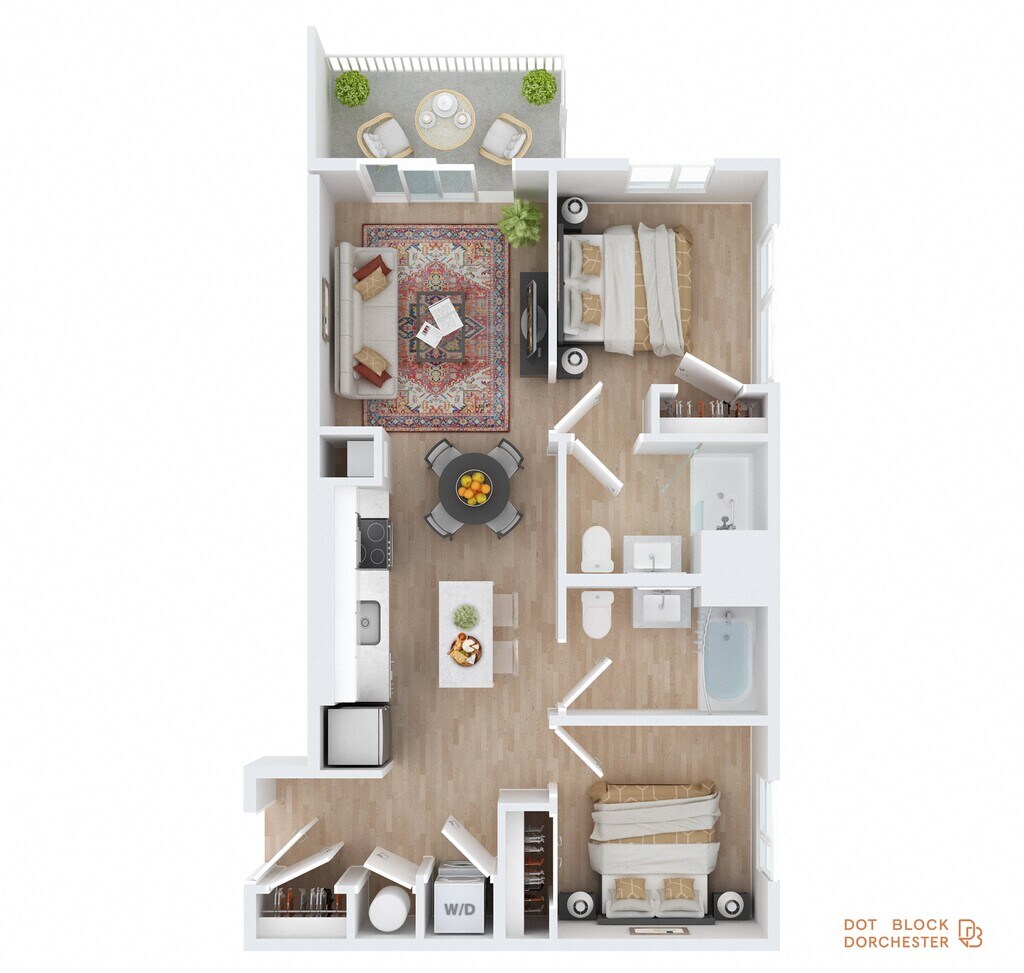 Dot Block ofrece apartamentos de Estudio a 3 Dormitorios desde $2,485 con 407–1,057 pies cuadrados. Aquí está el precio actual y la disponibilidad: