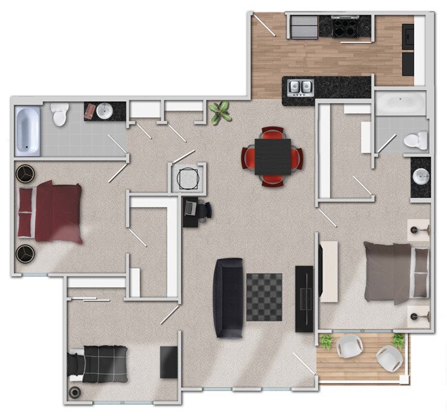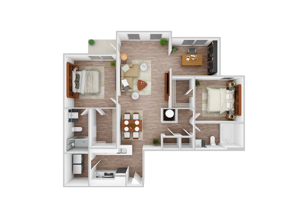 Modelo de apartamento: Ash 3 | RenovatedDesde $1,3661 Dormitorio, 1 Baño, 903 sq ftDisponible Ahora![]()