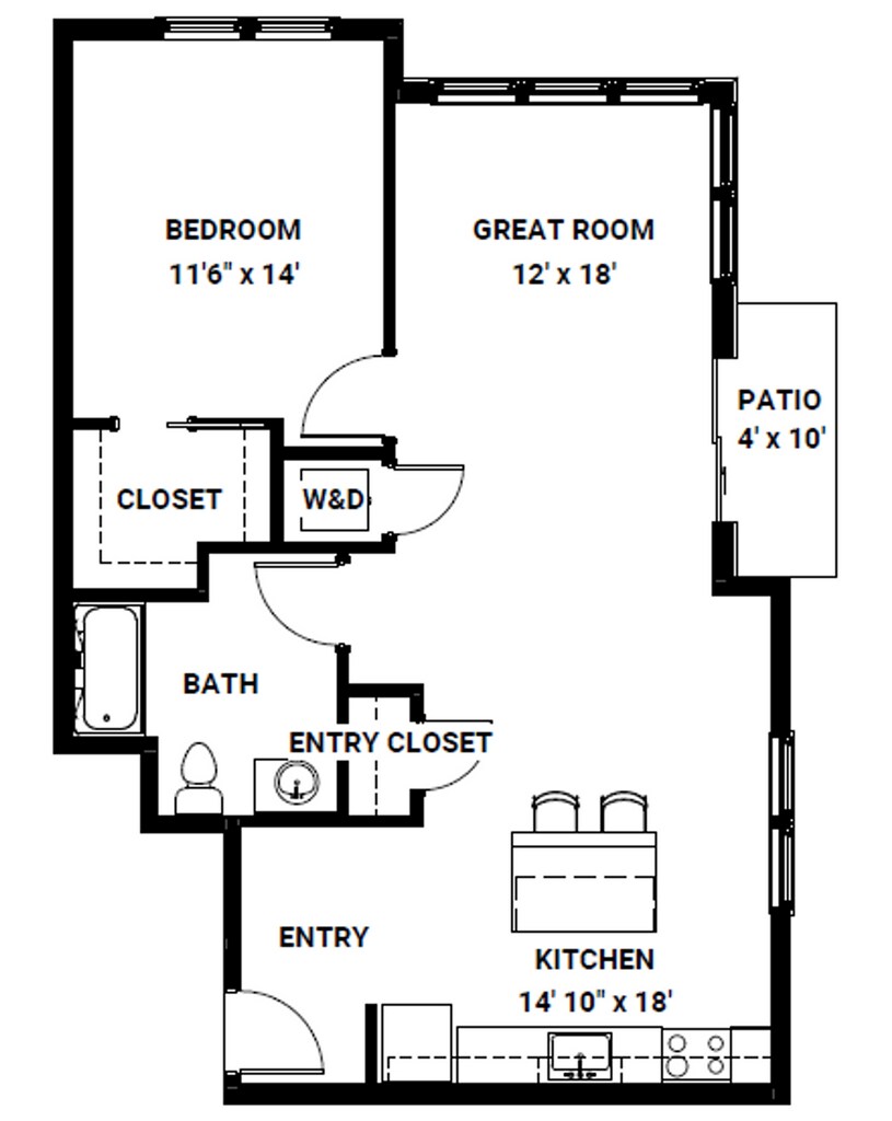 1 Bedroom / 1 Bathroom Type A12