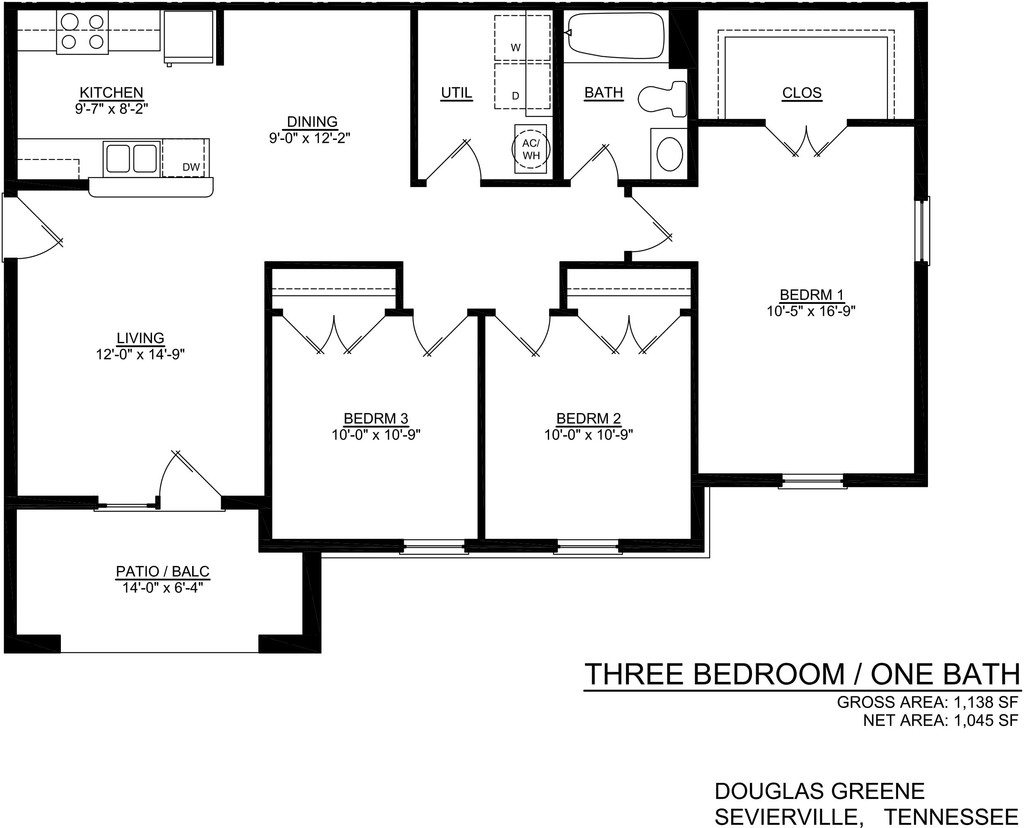 Two Bedroom - Plano 1 Unidad de apartamento: 318Modelo de apartamento: Two Bedroom2 Dormitorios, 1 Baño, 977 sq ftDisponible Ahora3 Dormitorios
