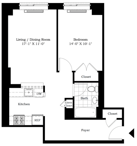 1 Dormitorio, 1 Baño, 702 pies²El más grandeEsta opción tiene las unidades más grandes para este modeloGalería del Modelo