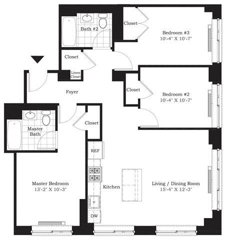 Modelo de apartamento: C13 Dormitorios, 2 Baños, 1116 sq ftNo Disponible![]()