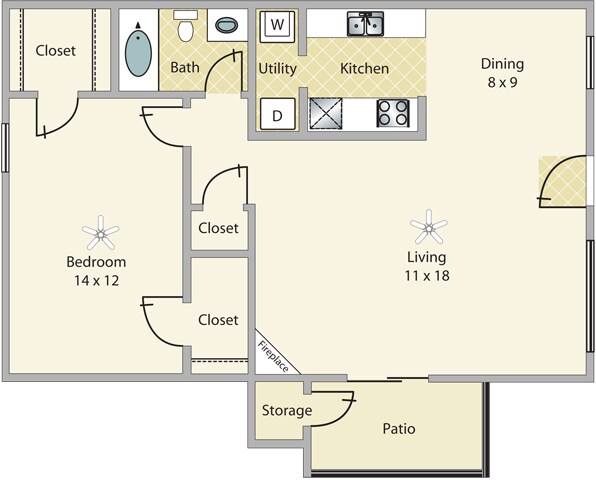 Modelo de apartamento: A1Desde $1,2101 Dormitorio, 1 Baño, 751 sq ftDisponible Ahora![]()