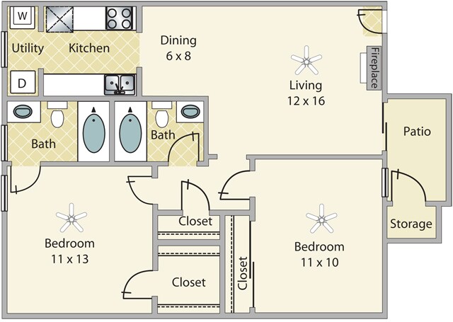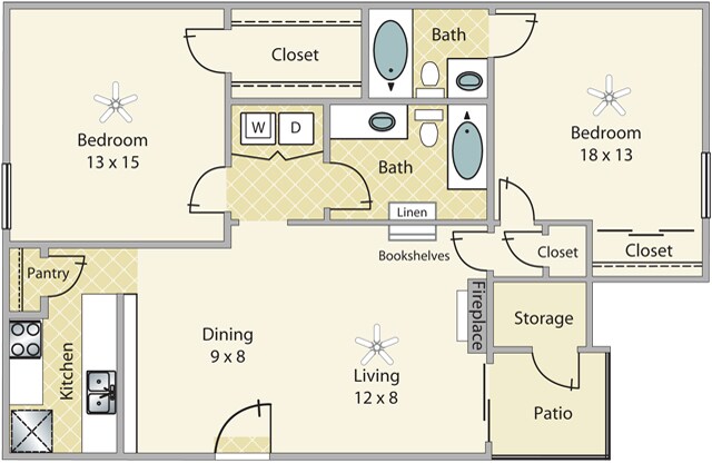 Modelo de apartamento: B1Desde $1,3952 Dormitorios, 2 Baños, 900 sq ftDisponible Ahora![]()