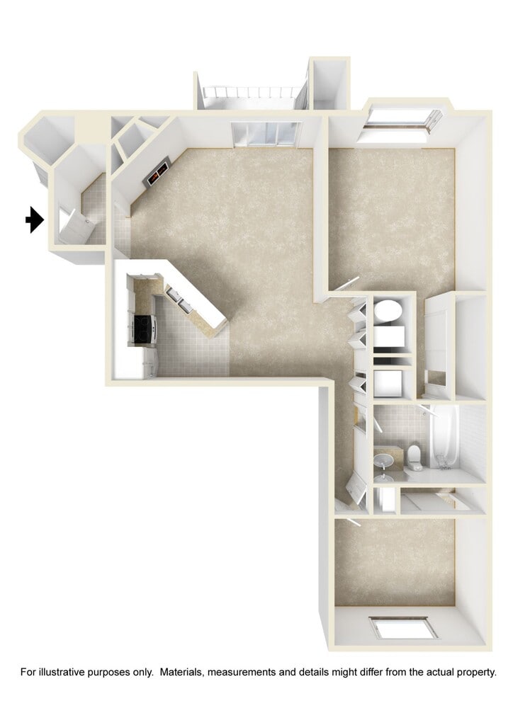 2 Dormitorios, 1 Baño, 835 pies²Disponible Dec 23Galería del Modelo