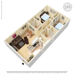 Modelo de apartamento: Two Bedroom2 Dormitorios, 2 Baños, 946 sq ftNo DisponibleTwo Bedroom - Plano 1 3 Dormitorios