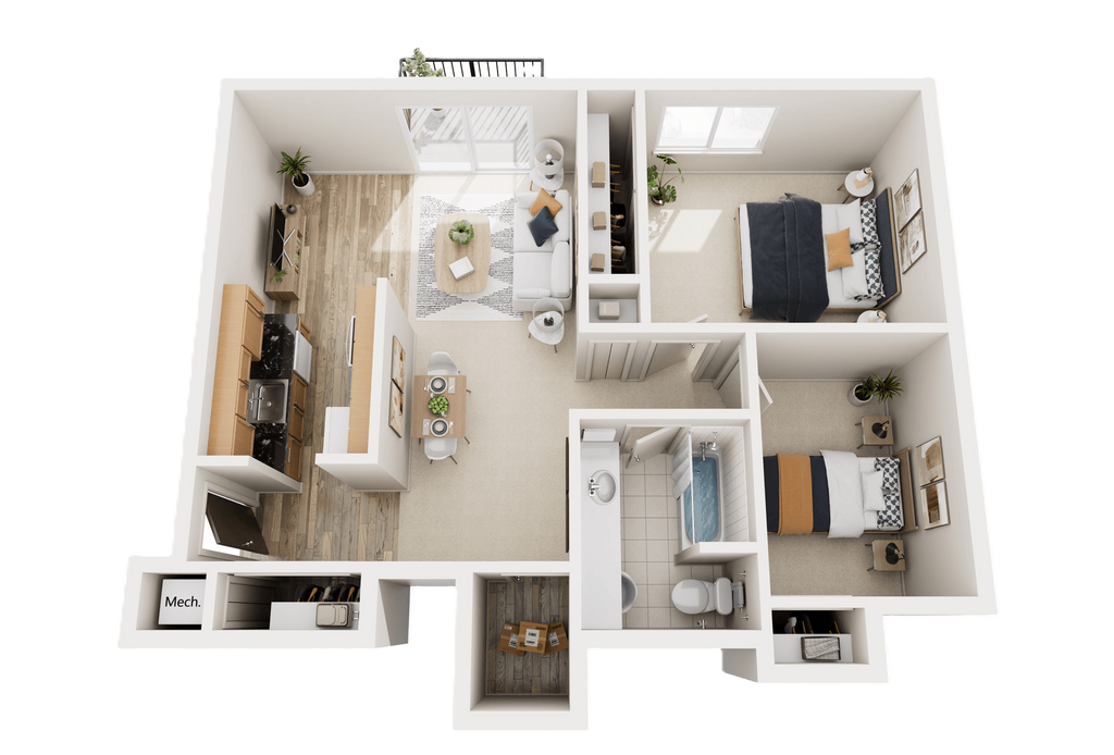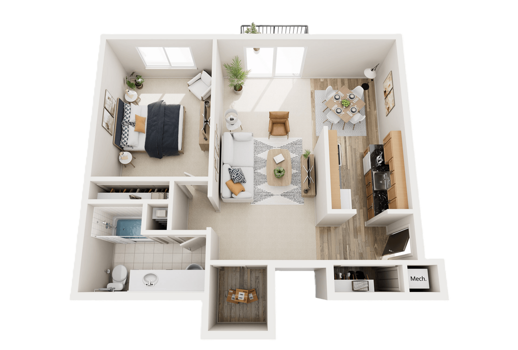 1 Dormitorio, 1 Baño, 800 pies²Disponible AhoraGalería del Modelo