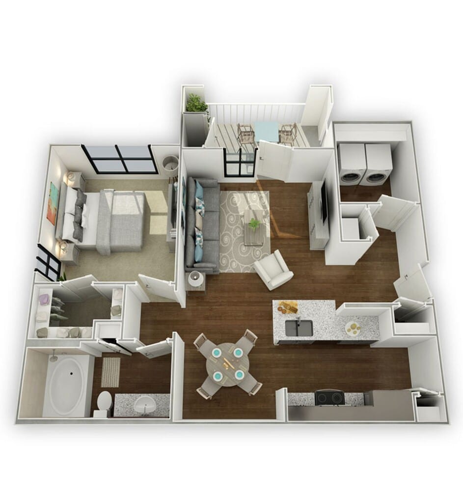 1 Dormitorio, 1 Baño, 788 pies²Disponible AhoraEl más grandeEsta opción tiene las unidades más grandes para este modeloGalería del Modelo
