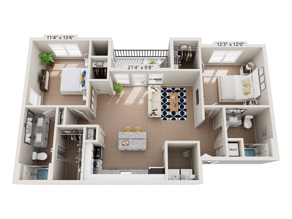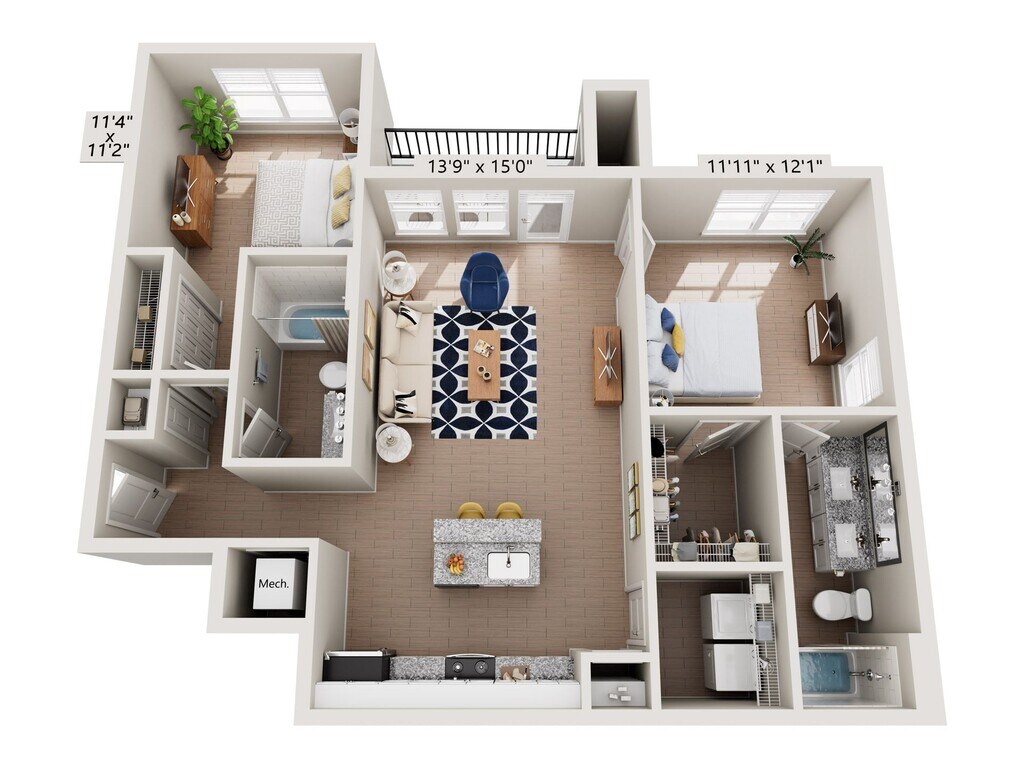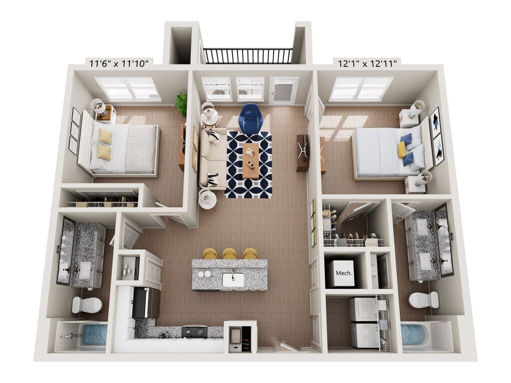1 Dormitorio, 1 Baño, 642 pies²Disponible AhoraGalería del Modelo