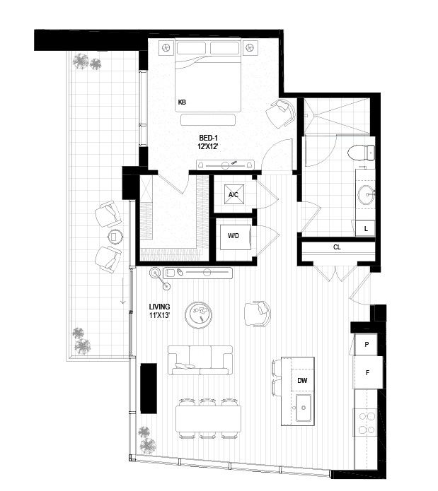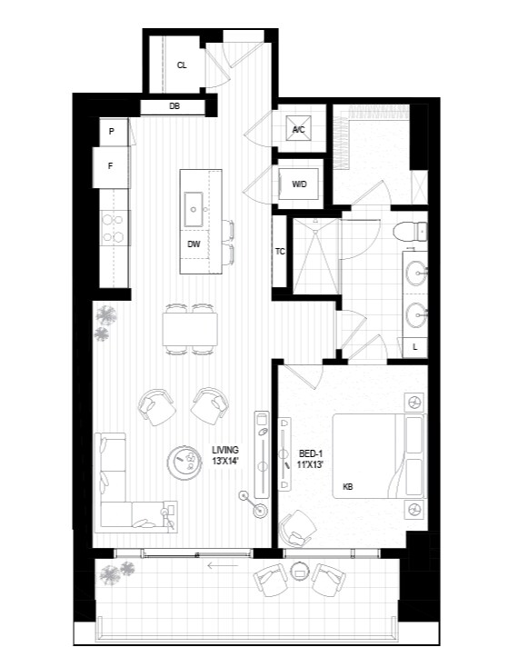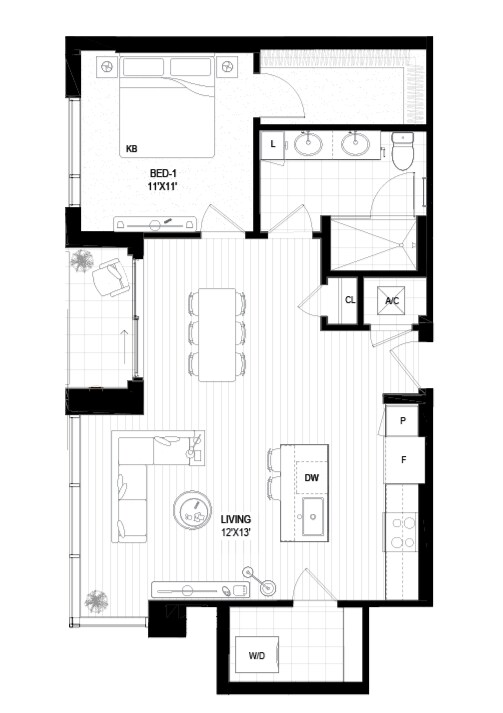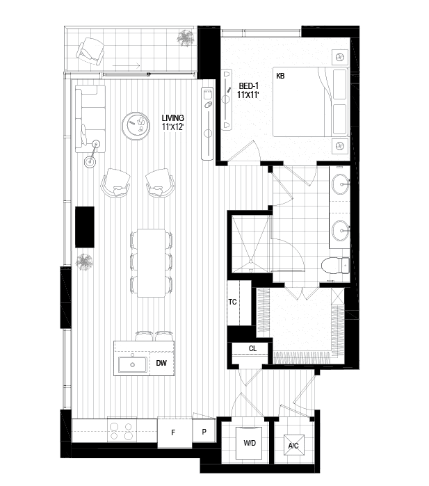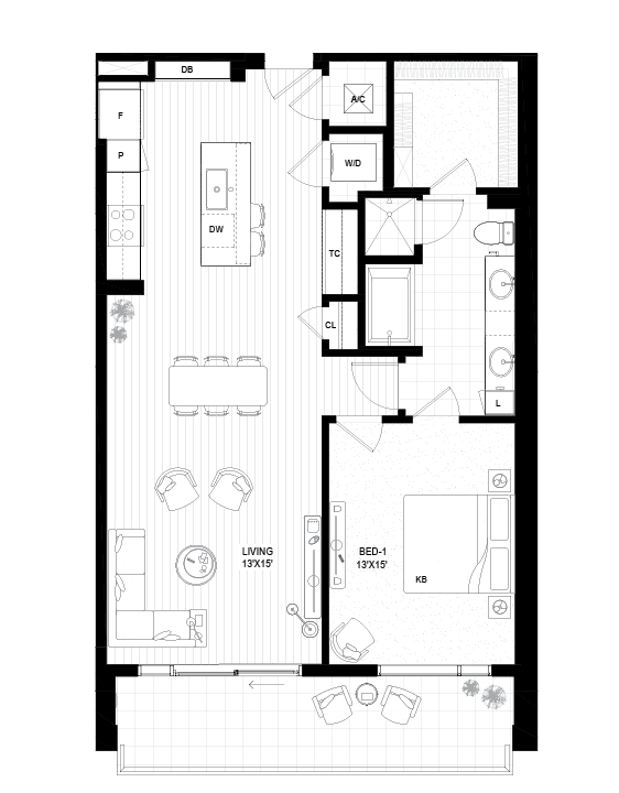 1 Dormitorio, 1 Baño, 699 pies²Disponible AhoraGalería del Modelo