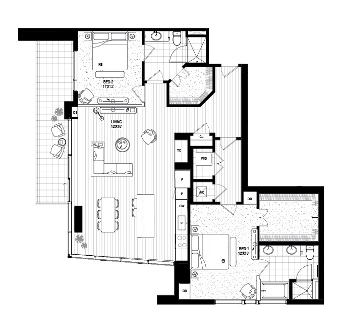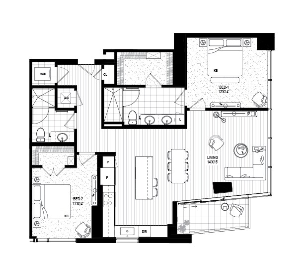 Modelo de apartamento: A2.21 Dormitorio, 1 Baño, 876 sq ftDisponible Ahora![]()