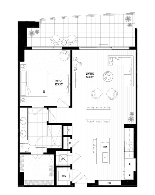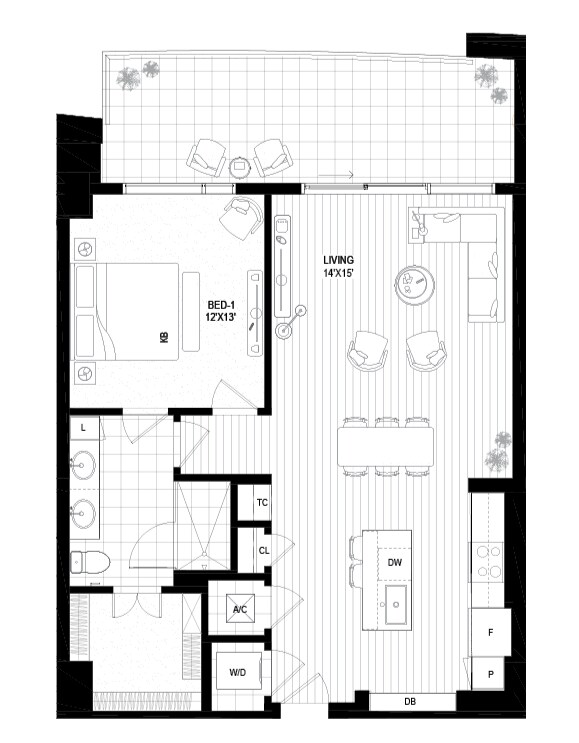 S1.3 - Plano 1 Unidad de apartamento: Drewery Place-0505Modelo de apartamento: S1.31 Dormitorio, 1 Baño, 655 sq ftDisponible AhoraS1.4