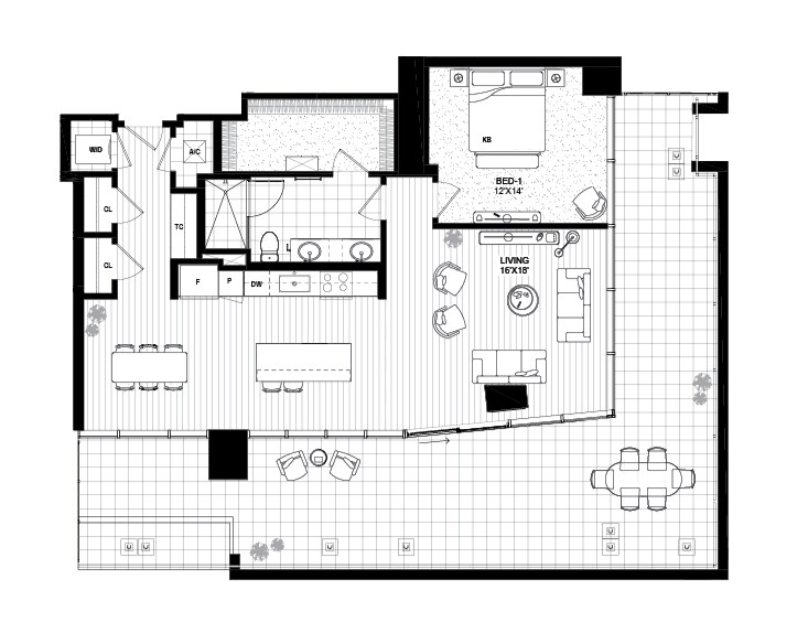 Modelo de apartamento: S1.41 Dormitorio, 1 Baño, 748 sq ftDisponible Ahora![]()