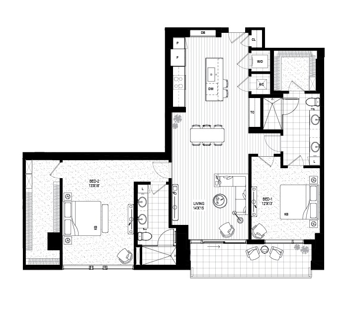 1 Dormitorio, 1 Baño, 748 pies²Disponible AhoraGalería del Modelo