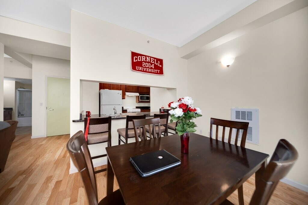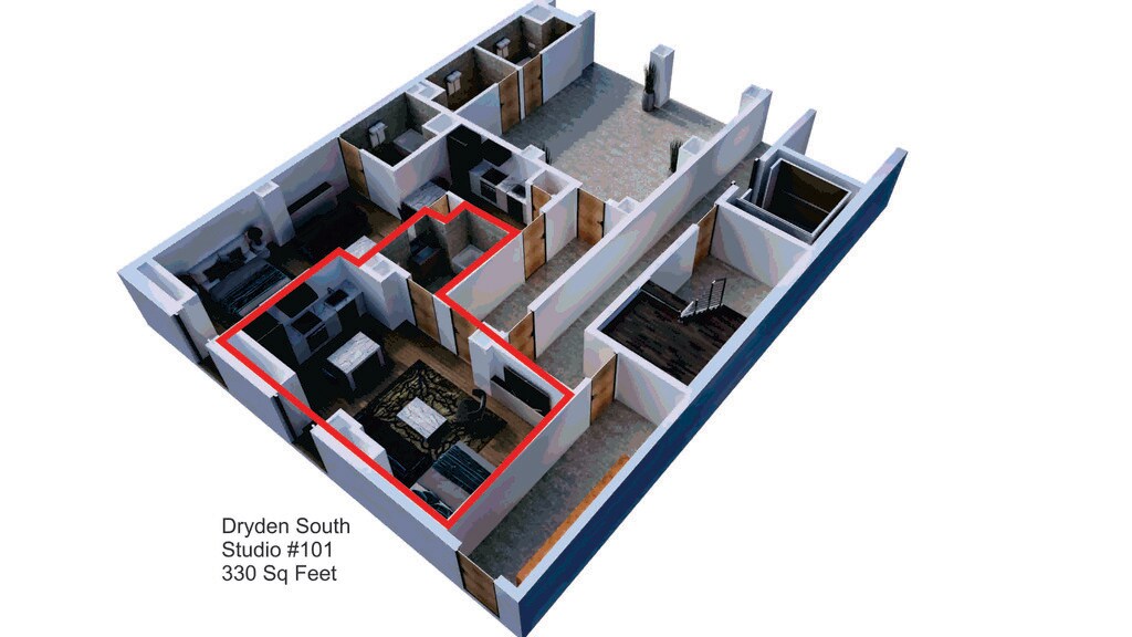 Vive el sueño en Collegetowns mejor dirección. Dryden South es un moderno edificio Convenientemente ubicado a una cuadra del campus, en el extremo superior Collegetown cerca de todos los mejores restaurantes, panaderías, etc. A solo unos minutos a pie del campus de Cornell Dryden South ofrece enormes, completamente suites amuebladas con acceso a todas las comodidades del edificio incluyen: gimnasio centro, elevador, lavandería en el lugar, almacenaje de bicicletas cubierto y un cajero automático. Suites tiene amplias habitaciones con techos altos, una gran cantidad de luz natural y construcción de alta calidad que brinda la máxima privacidad, seguridad y tranquilidad disfrutes, un buen lugar para estudiantes dedicados. Todos los contratos de arrendamiento de 12 meses y comienza a junio de Primer.