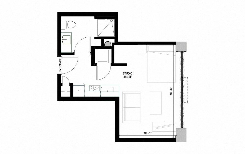 Estudio, 1 Baño, 364 pies²Precio Mensual TotalDisponible January 21, 2026Galería del Modelo