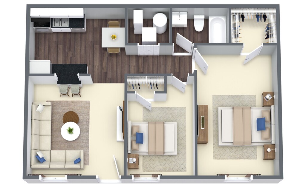 1 Dormitorio, 1 Baño, 775 pies²El más grandeEsta opción tiene las unidades más grandes para este modeloGalería del Modelo
