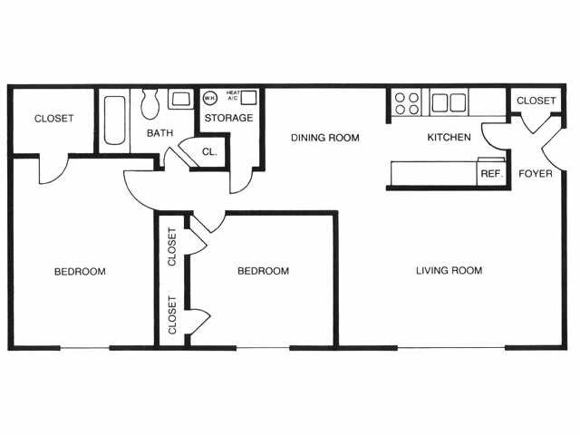 Modelo de apartamento: HerefordDesde $9501 Dormitorio, 1 Baño, 550 sq ftDisponible Ahora![]()