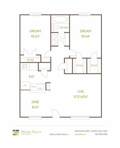 Con patios con bellos paisajes, una piscina profunda de 6 pies, e instalaciones de lavandería en el lugar, Duval Villa se encargará de satisfacer todas tus necesidades. Elige entre uno de nuestros espaciosos planos de planta de una o dos habitaciones con fantásticas opciones para compañeros de apartamento. Cocinas de concepto abierto que ofrecen mucho espacio para recibir invitados, y una gran alacena y espacio de guardarropas ofrecen un amplio espacio de almacenaje. Cada apartamento también cuenta con un aire acondicionado central individual, así como ventiladores de techo en cada habitación para combatir los veranos de Texas. Duval Villas está ubicado en el histórico Hyde Park, uno de los vecindarios más codiciados de la ciudad. Rodeado por las encantadoras calles y a solo unos pasos de distancia de algunos de los restaurantes y las tiendas minoristas más populares, Duval Villa es una verdadera joya de Austin. El campus de la Universidad de Texas y del centro de la ciudad de Austin están a un corto paseo en bicicleta de distancia, o puedes subirte a las líneas de autobús de la ciudad y la U.T. ubicadas frente a la propiedad para un fácil viaje diario. Aprovecha la ruta del autobús metropolitano de Capital n.º 7, que está ubicado justo en frente de la comunidad. El servicio de traslado U.T. tiene varias ubicaciones que funcionan durante la semana, a solo unas cuadras de la propiedad.