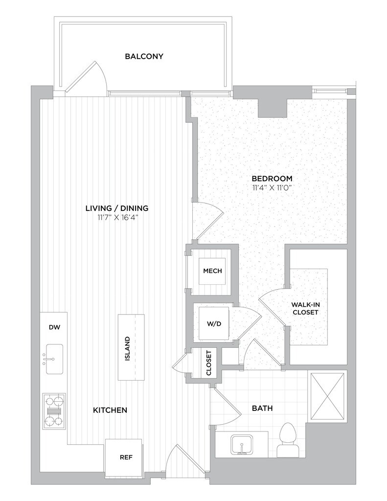 1 Dormitorio, 1 Baño, 720 pies²Disponible AhoraGalería del Modelo