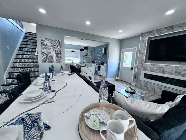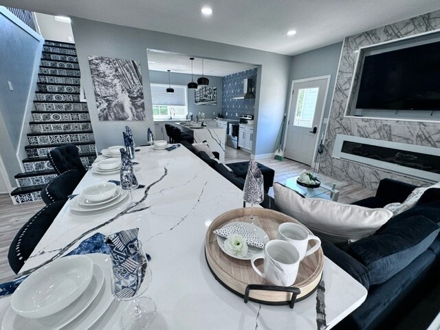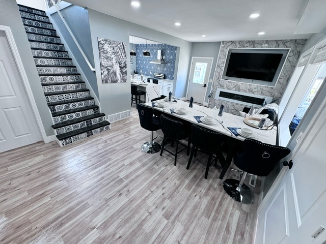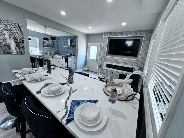 Welcome to this beautiful 5-bedroom, 3-bathroom home on E Huron St, Berlin. Fully furnished and newly renovated, this spacious house offers a perfect blend of comfort and modern design, ideal for families, groups, or professionals. The main bedrooms are furnished with luxurious king and queen beds, ensuring a restful stay, while the cozy front porch features two daybeds, perfect for relaxing with a morning coffee or an afternoon nap. Inside, the open-plan living spaces are filled with natural light, creating a warm and inviting atmosphere. The fully equipped kitchen, featuring updated stainless steel appliances, has everything you need to prepare meals with ease. This home is not only stylish and comfortable but also conveniently located in a prime Berlin neighborhood, close to local attractions, dining, shopping, and transportation. Whether you’re visiting for a short getaway or an extended stay, this home provides the perfect base for your Berlin adventure.