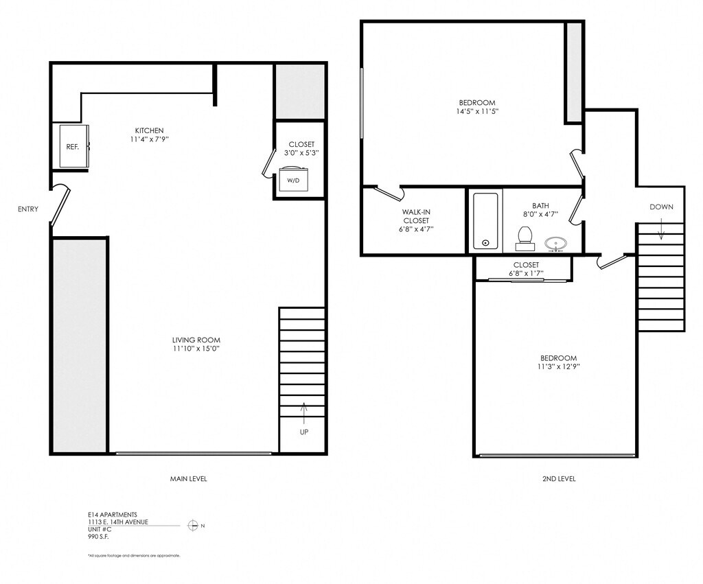 2 Dormitorios, 1 Baño, 990 pies²Galería del Modelo