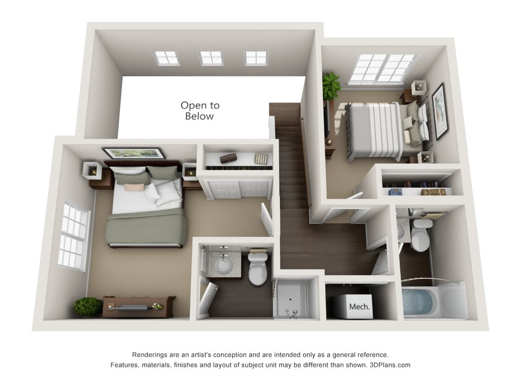 Two Bedroom and One and Half Bath - Plano 1 3 Dormitorios