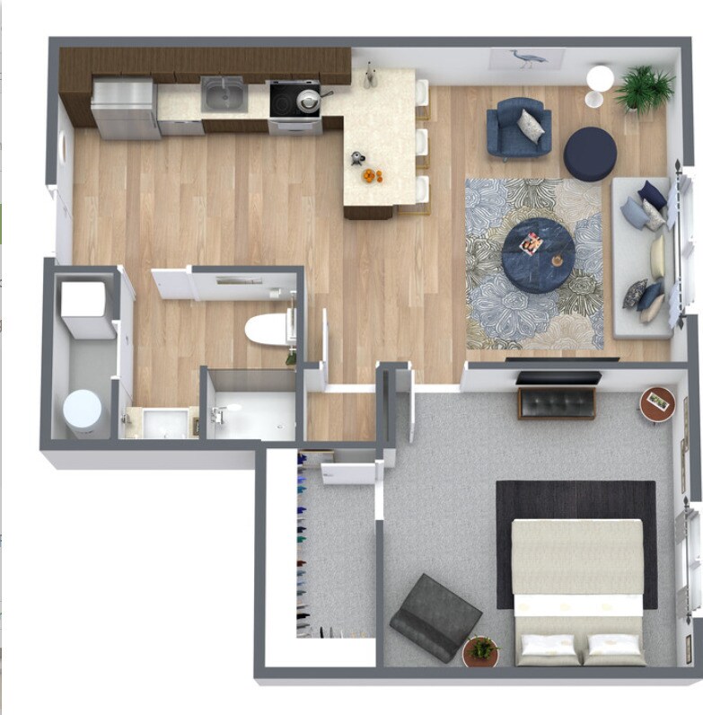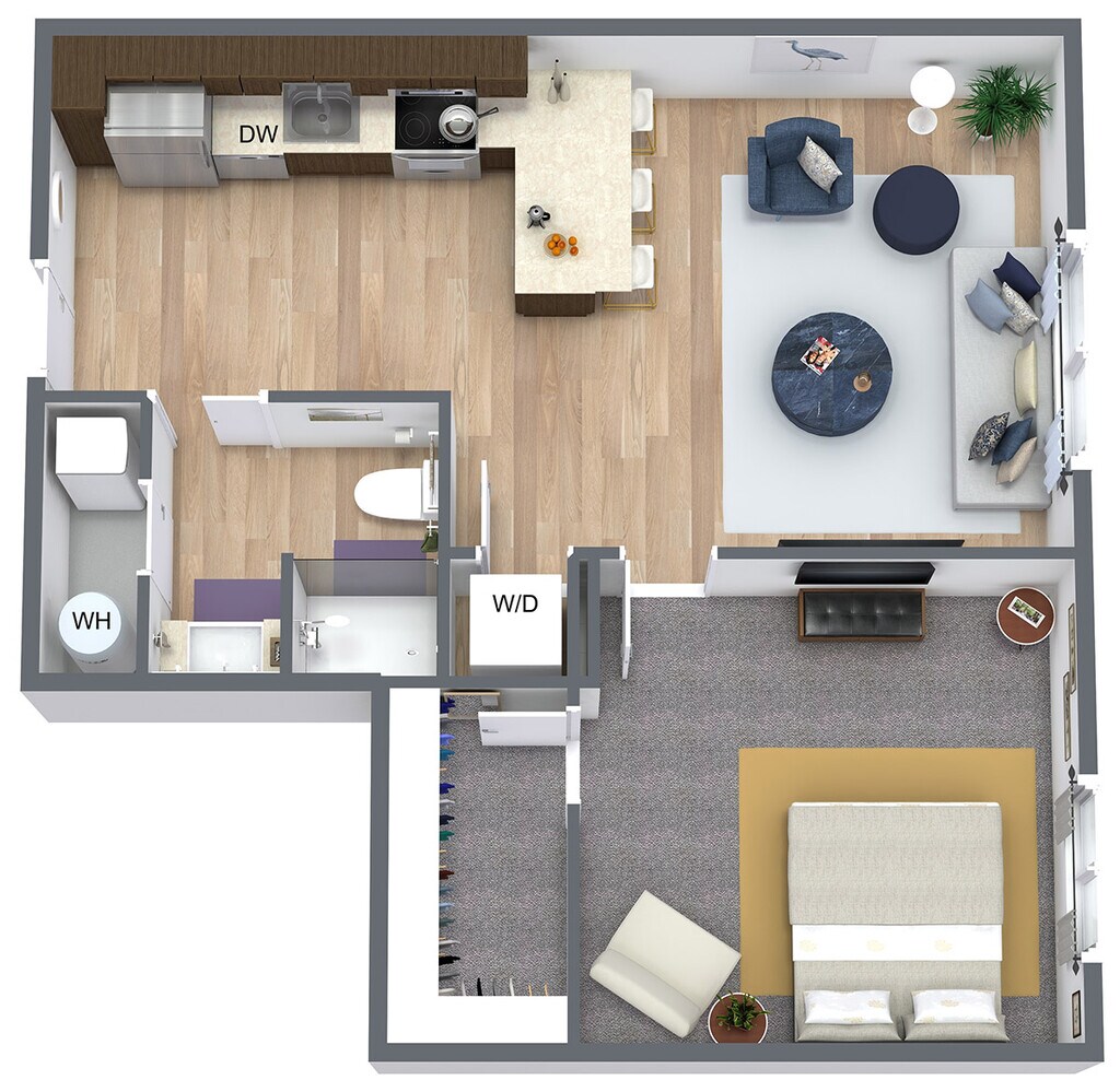 1 Dormitorio, 1 Baño, 750 pies²El más grandeEsta opción tiene las unidades más grandes para este modeloGalería del Modelo