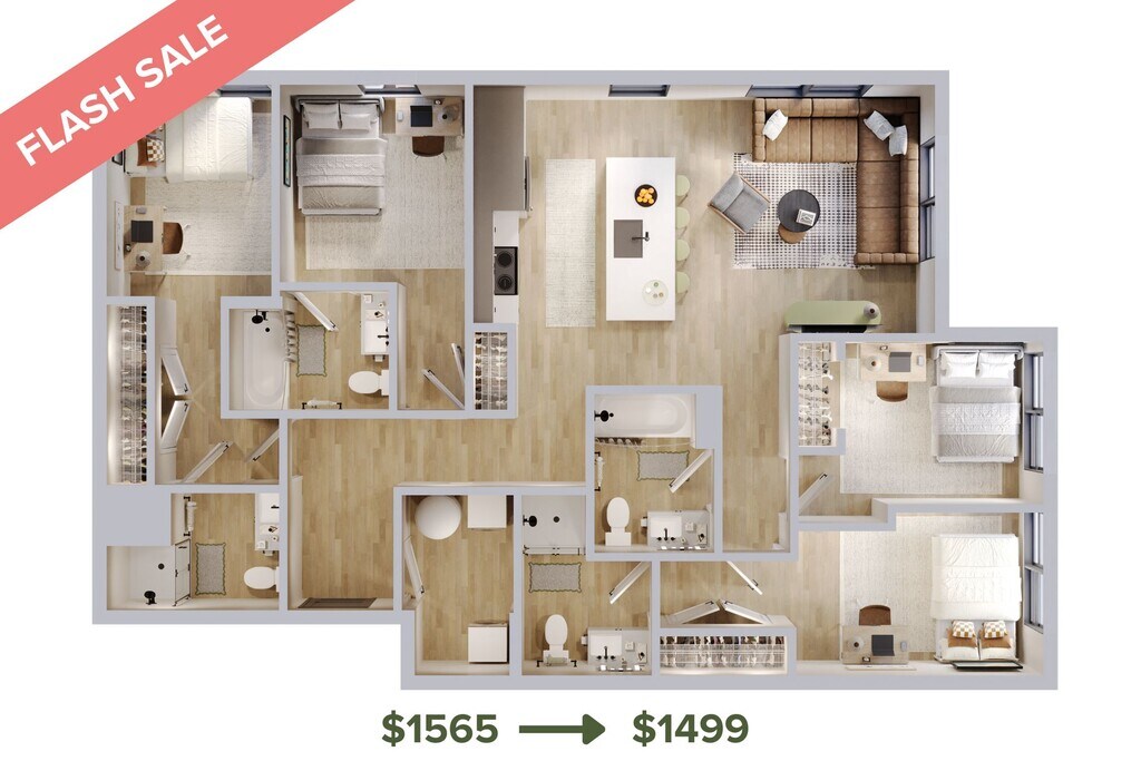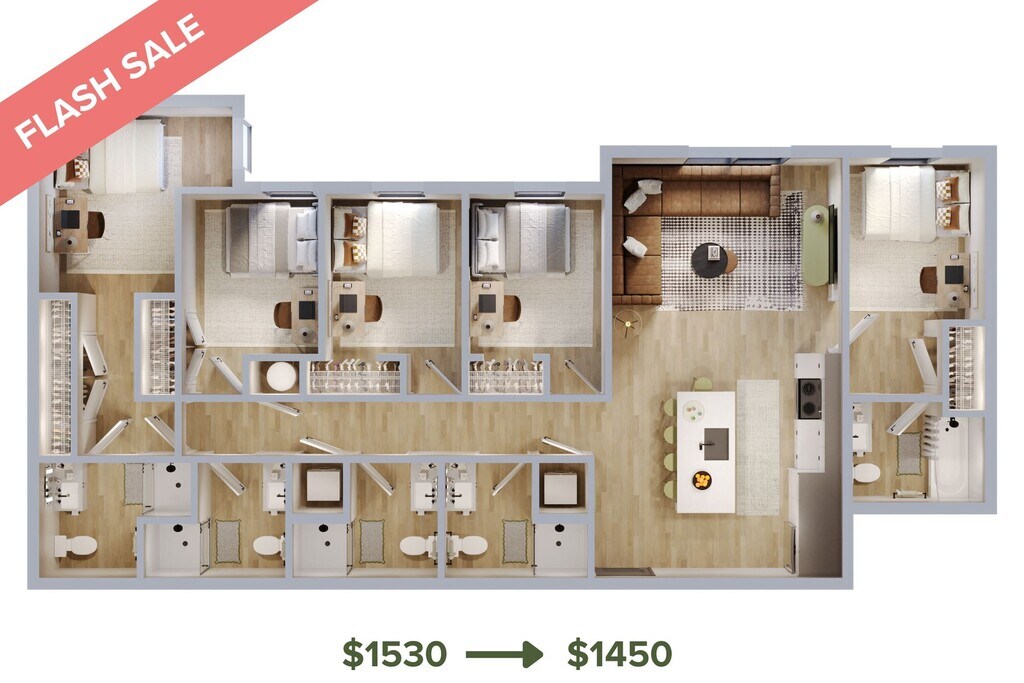 Modelo de apartamento: 4BR/4BA - D2Desde $1,5554 Dormitorios, 4 Baños, 1203 sq ftDisponible August 7, 2026![]()