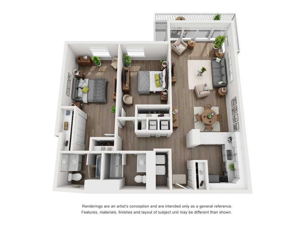 2 Dormitorios, 2 Baños, 902-1206 pies²Galería del Modelo