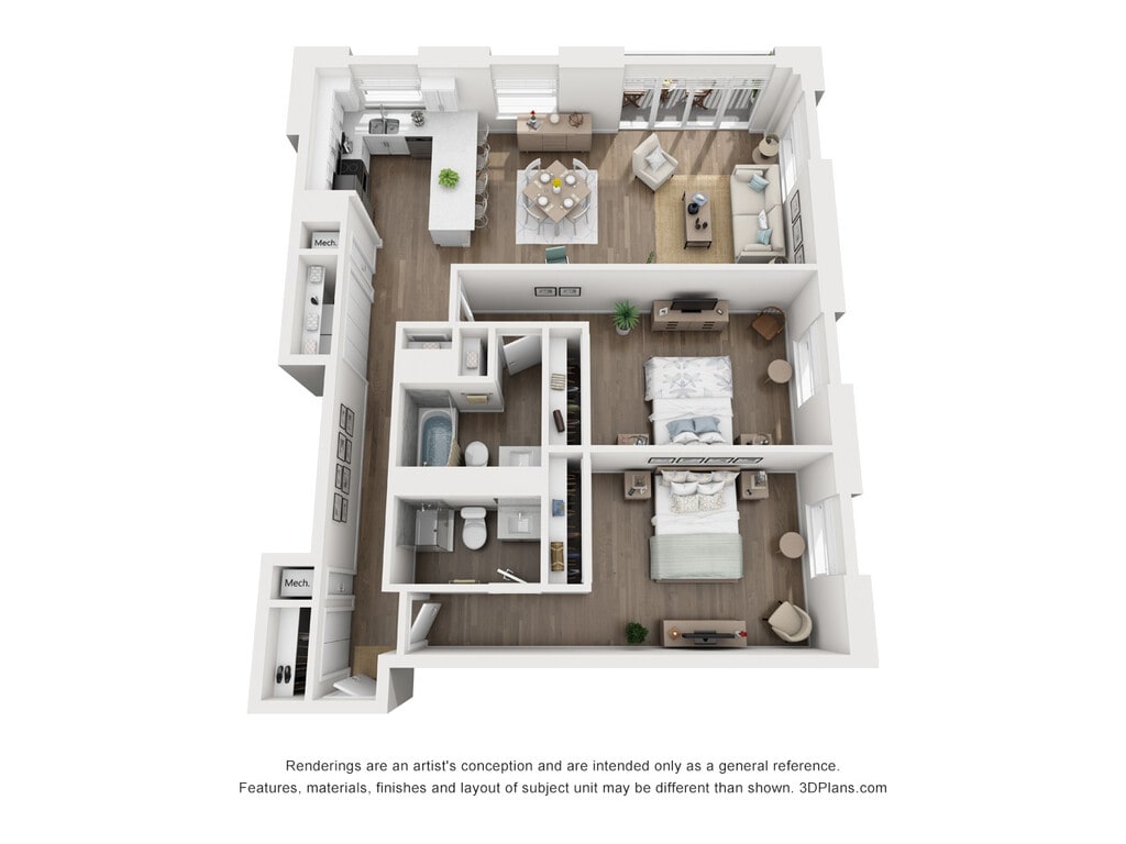 2 Bed 2 Bath - Plano 3 Los planos son representaciones artísticas. Todas las dimensiones son aproximadas. El producto y las especificaciones reales pueden variar en tamaño o detalle. No todas las características están disponibles en cada vivienda en alquiler. Por favor, consulta con un representante para obtener más detalles.