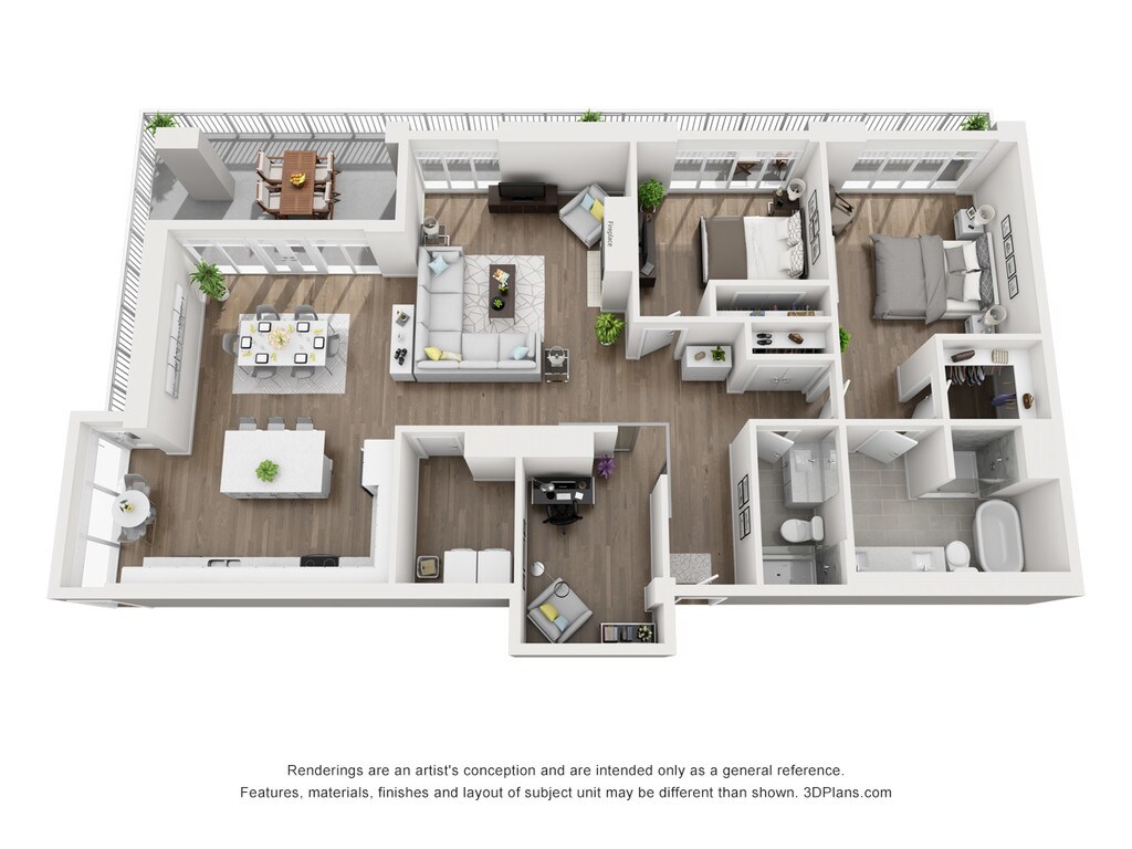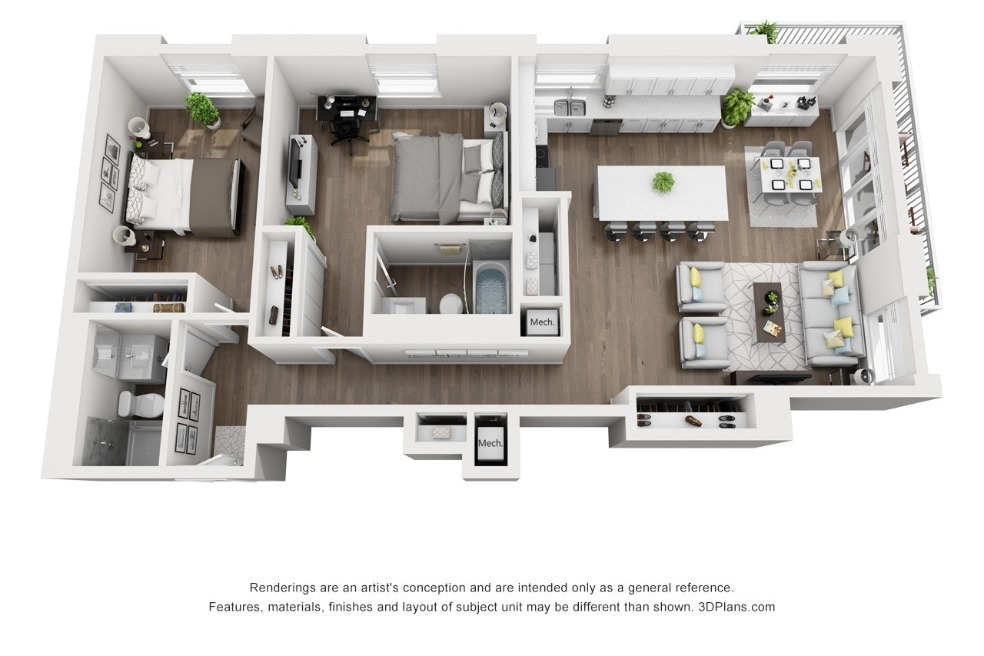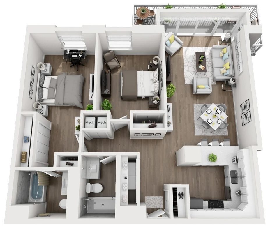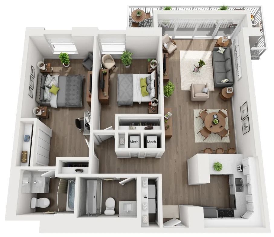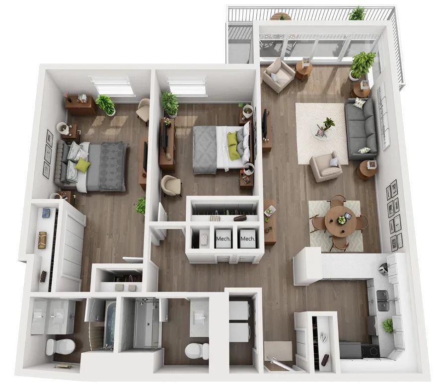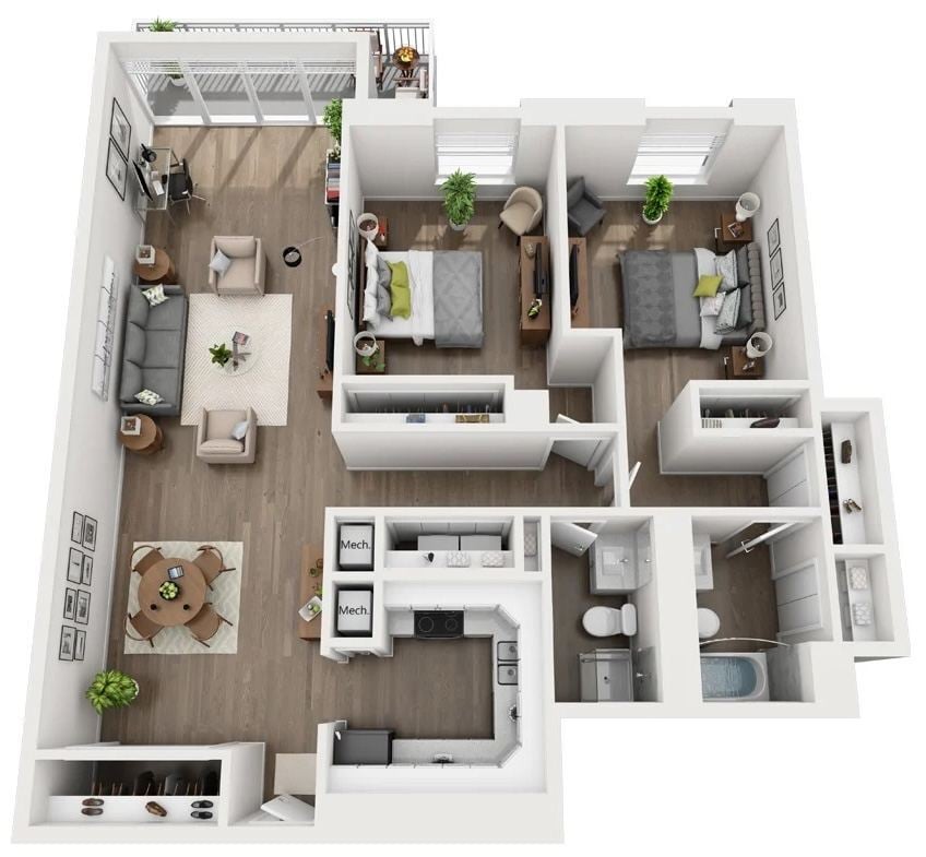 D Floor Plan - Plano 1 2 Bed 2 Bath