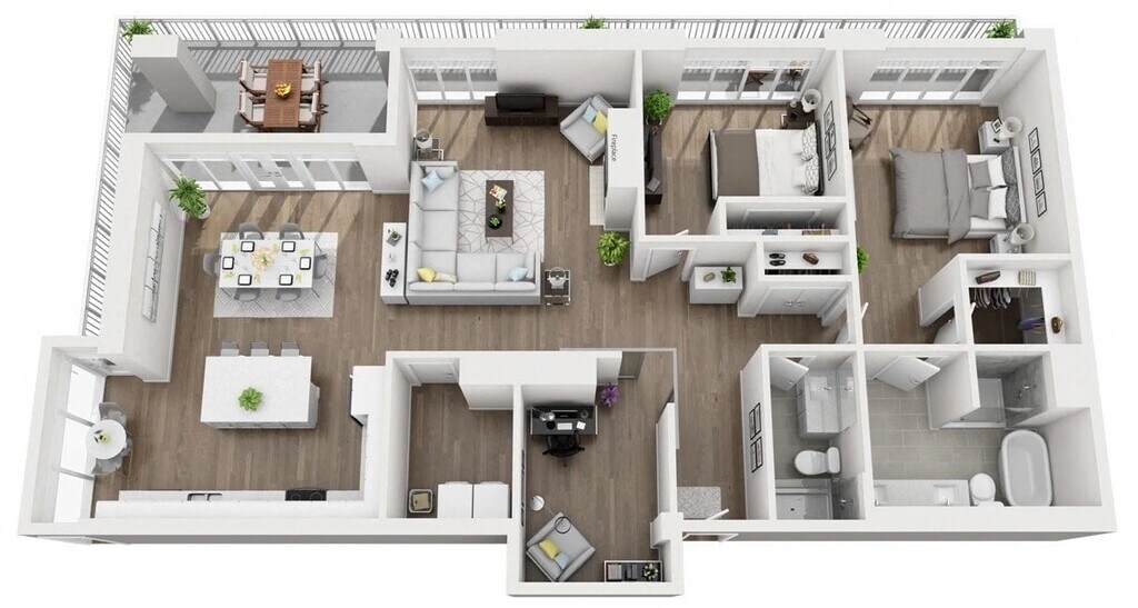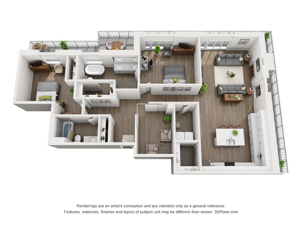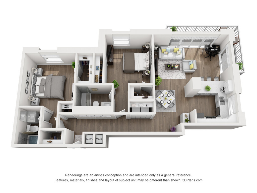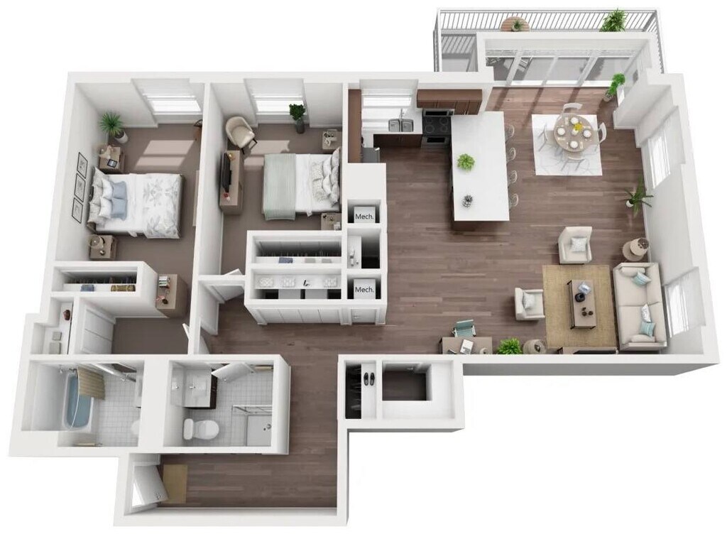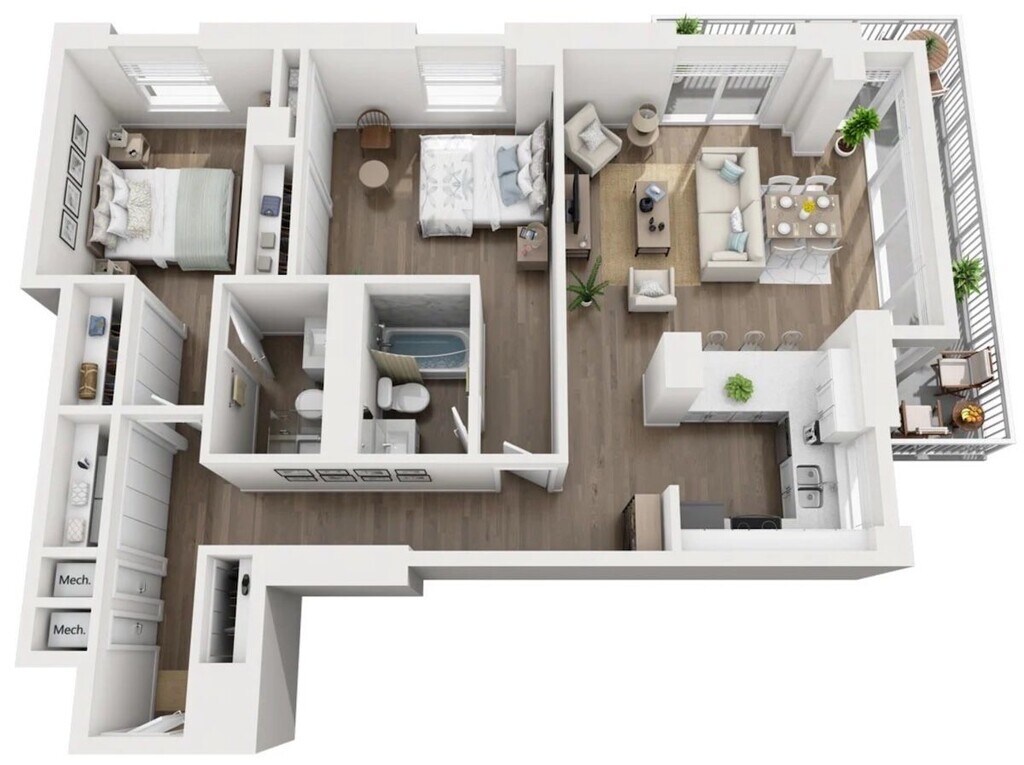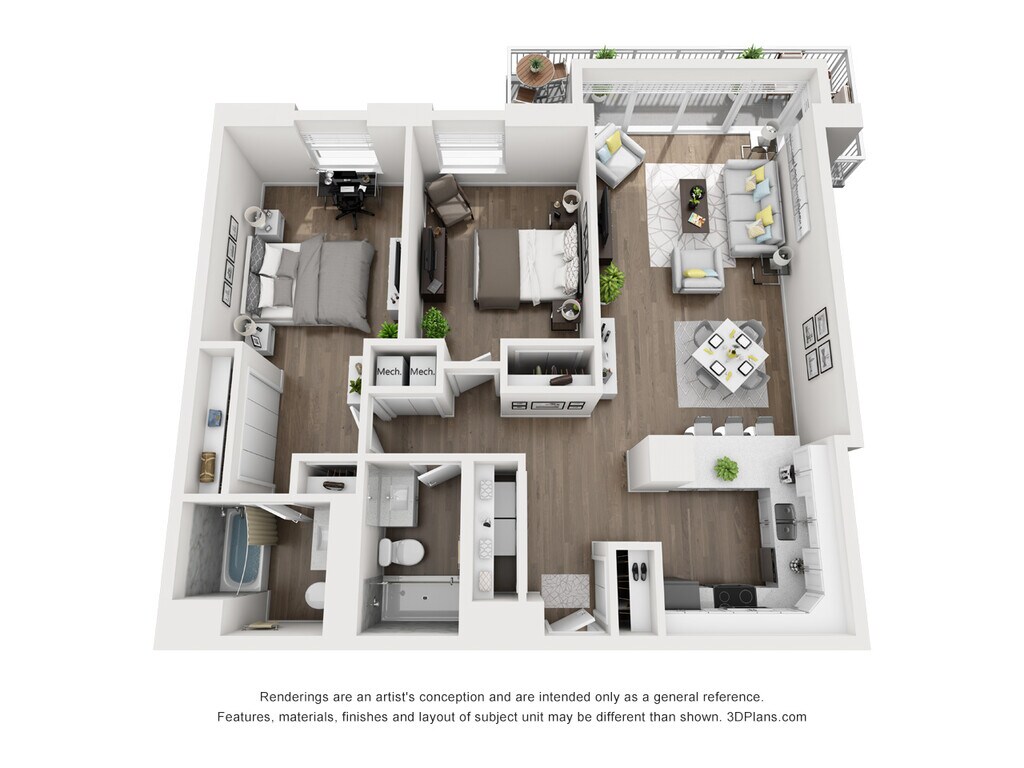 D Floor Plan - Plano 1 2 Bed 2 Bath
